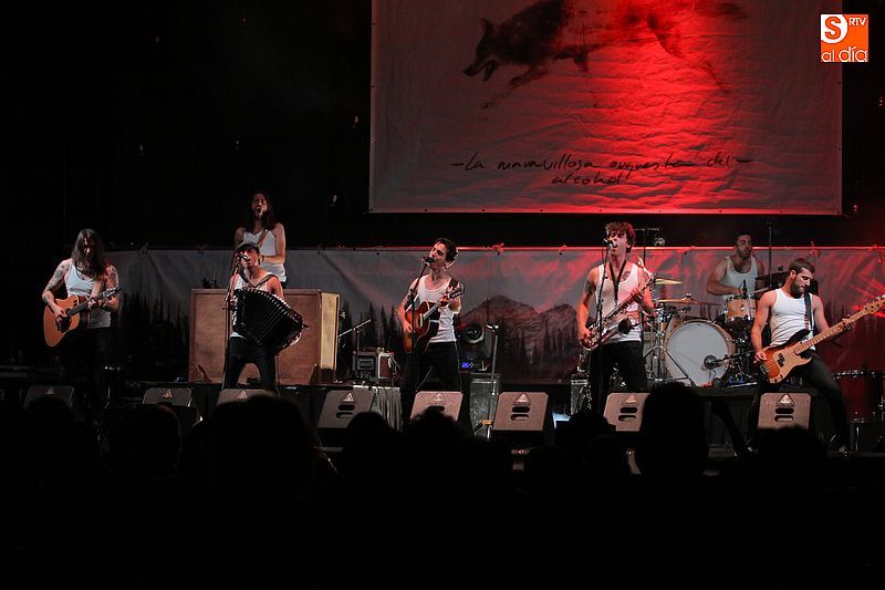 El turno pasó a manos de La M.O.D.A. El nutrido grupo de La Maravillosa Orquesta del Alcohol, llenó por completo el escenario y con el público ya preparado para disfrutar de la música, ofrecieron su música característica, con numerosos y variados instrumentos, como acordeón, el banjo, la mandolina o el saxofón. El público también disfrutó con la apuesta de los burgaleses, disfrutando de la primera propuesta musical de la larga lista de actuaciones que se vivirán en la villa durante los festejos.