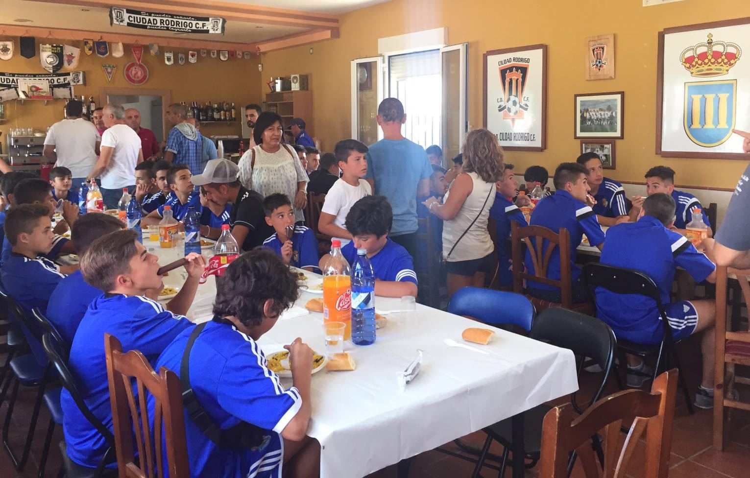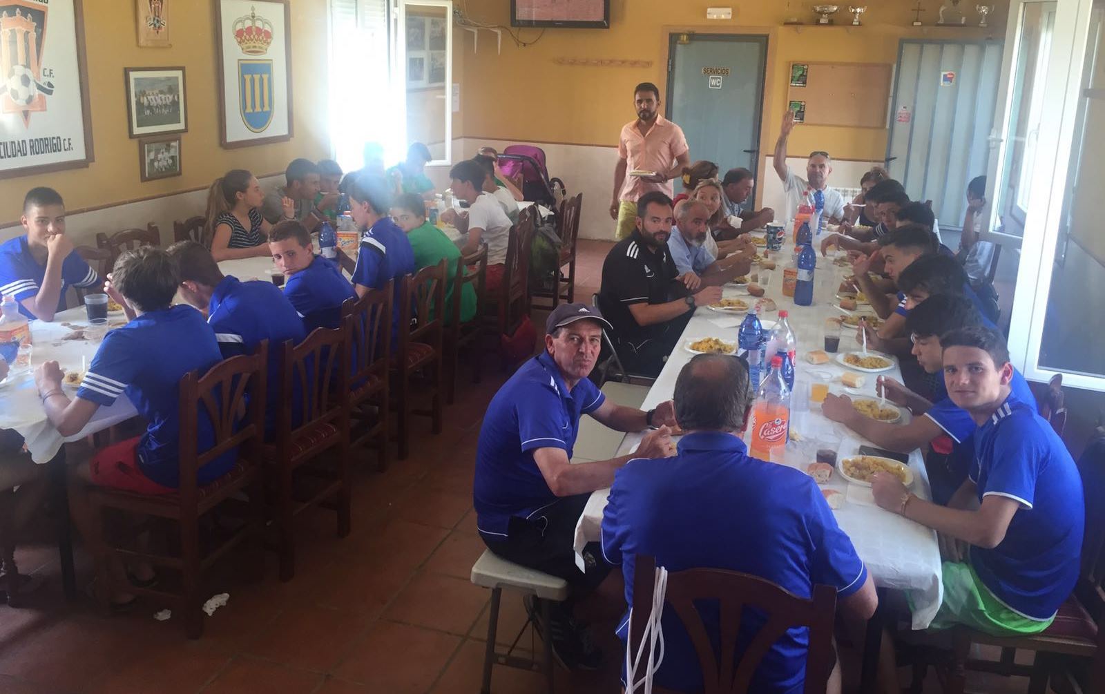 La larga sesión comenzó por la mañana con sendos amistosos de los equipos Infantil y Cadete. En el primero de ellos, los mirobrigenses cayeron por 3-1, mientras que el segundo finalizó con empate a 3. Concluido este choque fue turno para comer, que muchos de los presentes hicieron en la propia zona de La Muge gracias a una paellada preparada allí mismo.