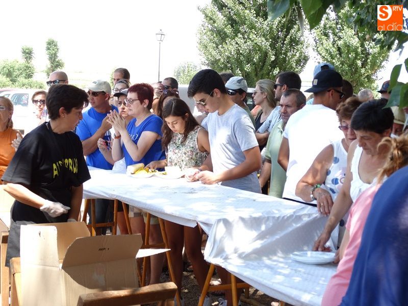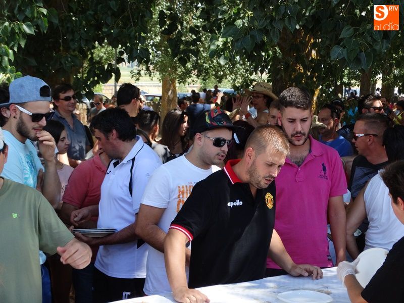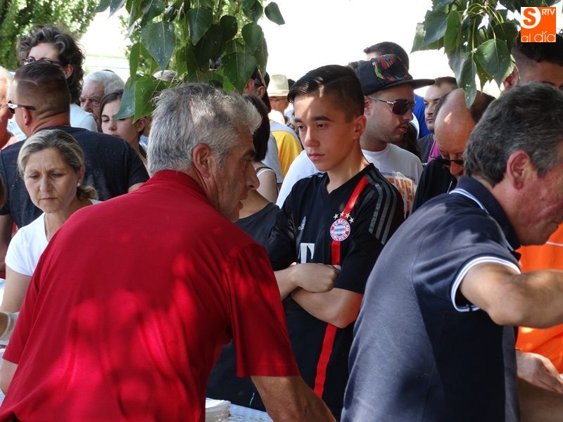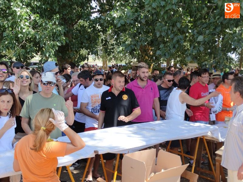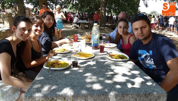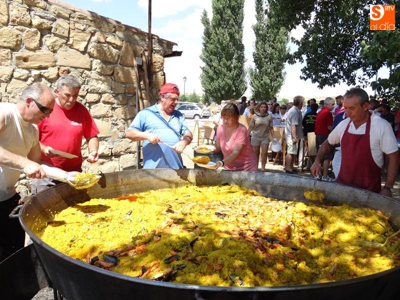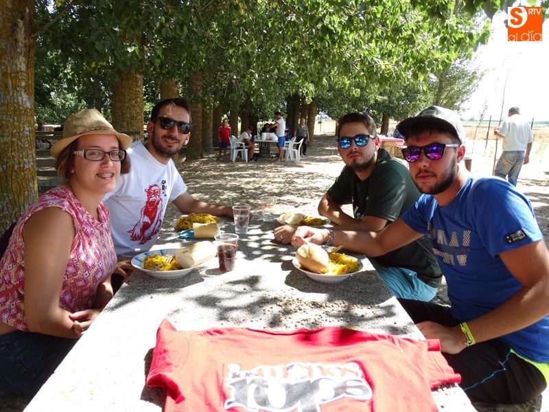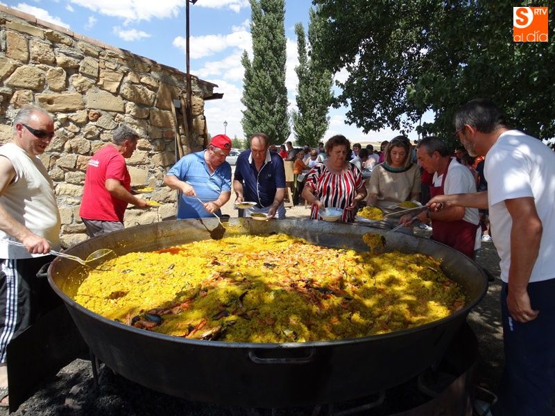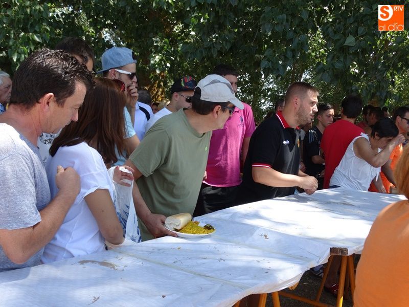 Los vecinos de Aldearrubia se han dado cita este domingo en el merendero de la localidad para saborear una deliciosa paella. Ha destacado la gran afluencia de personas, que han formado una larga cola en la que esperaban con ganas de hincar el diente a su plato de paella. No ha quedado ni una mesa del merendero libre, hasta tal punto que algunos han comido sobre una manta colocada en el suelo.