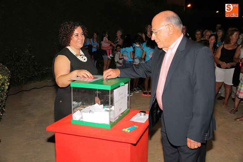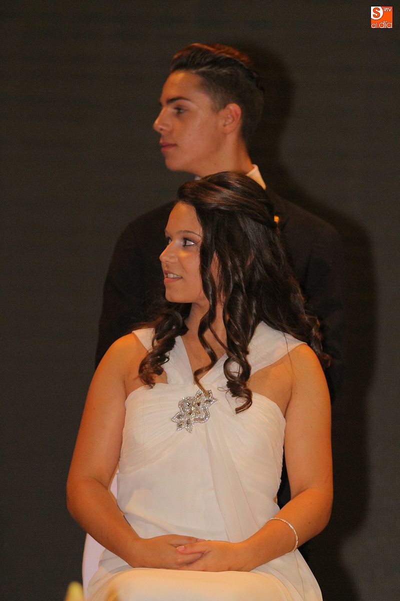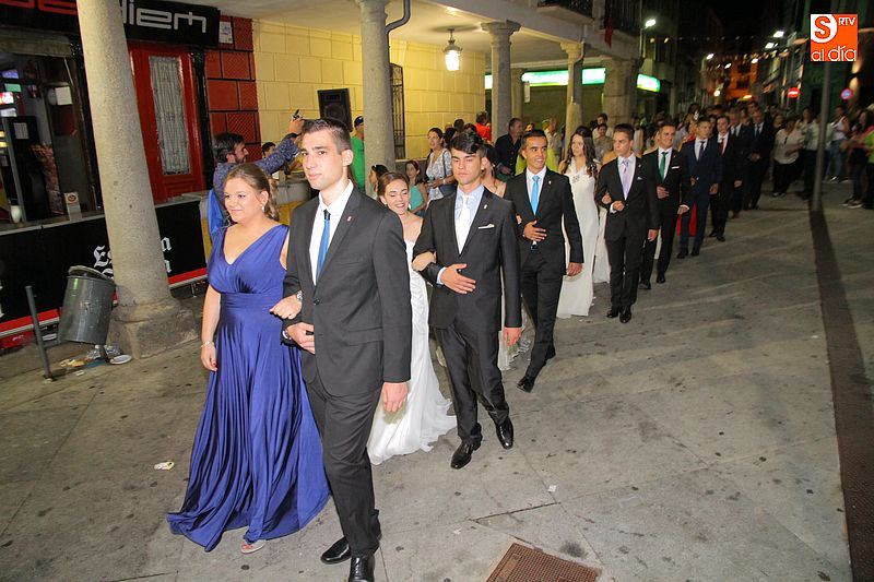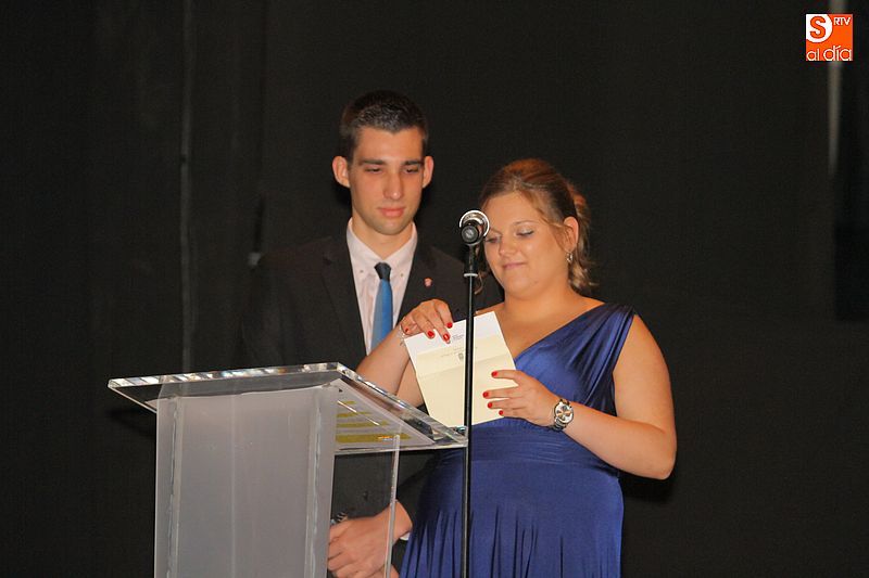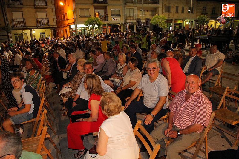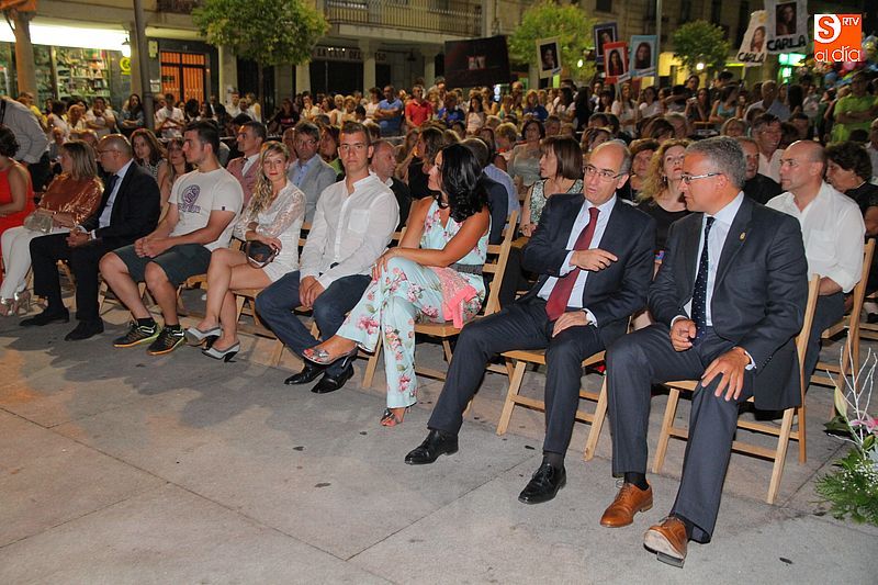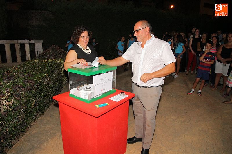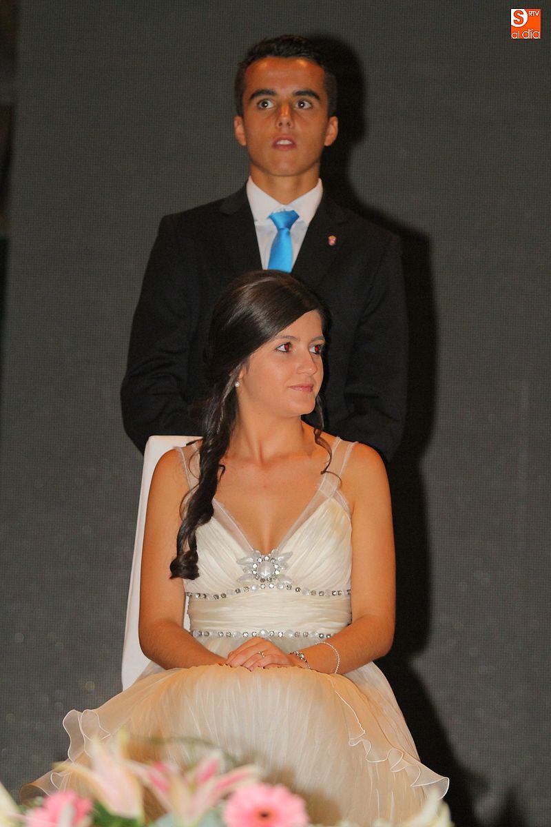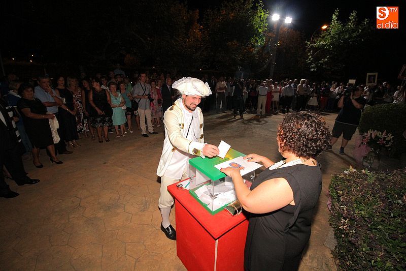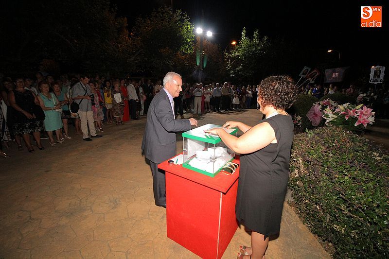 Las fiestas de Guijuelo viven la noche más mágica de la programación con la tradicional elección de la Reina de las Fiestas. Tras el vibrante chupinazo por la tarde, se presentó a la corte de honor, formada por Carla Andrés Peña, Estela Aparicio Velázquez, Sara Berrocal García, Natalia Díaz Calvo e Irene Gómez Luis y sus acompañantes, en el parque de El Pozuelo, con la presencia de la Corporación Municipal al completo, incluyendo al alcalde, Julián Ramos, y la presencia del presidente de la Diputación de Salamanca, Javier Iglesias. En ese escenario votaron los representantes de lasasociaciones culturales y deportivas de la villa, cuyos votos se sumaron a los que las peñas han realizado durante los pasados días en la oficina de turismo. Tras el acto protocolario, se ha desfilado hasta la plaza Mayor, donde ha llegado el turno de Lorenzo Santolino como pregonero de las fiestas. En su discurso ha recordado y agradecido el apoyo recibido por los vecinos de la villa en su trayectoria como piloto de Enduro y cómo ha llevado el jamón de Guijuelo como bandera por todo el mundo una vez en el campeonato mundial. Tras las palabras de Santolino, el juez de paz, José Conde, entregó el resultado de la votación, desvelándose el nombre de Carla Andrés como Reina de las Fiestas 2016, la reina de 2015, Isabel Benito, coronó a Carla, quien a su vez impuso las bandas a sus compañeras, cerrándose el acto con el tradicional vals de manos del alcalde.