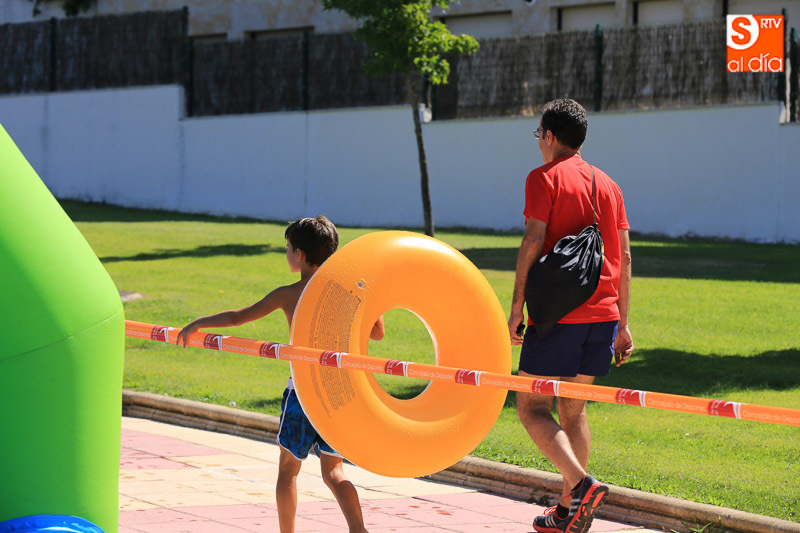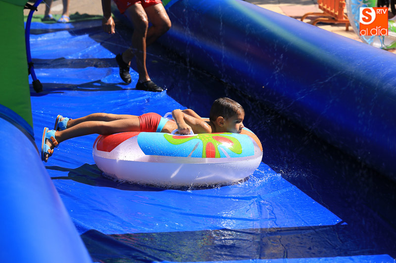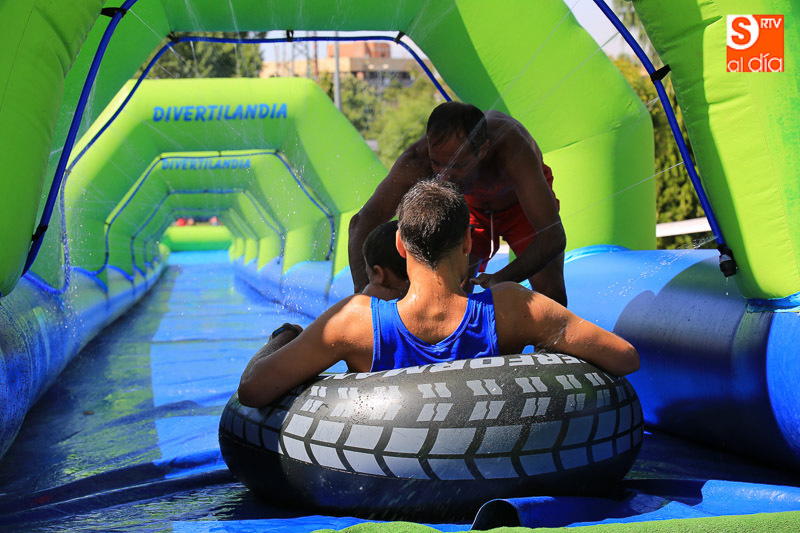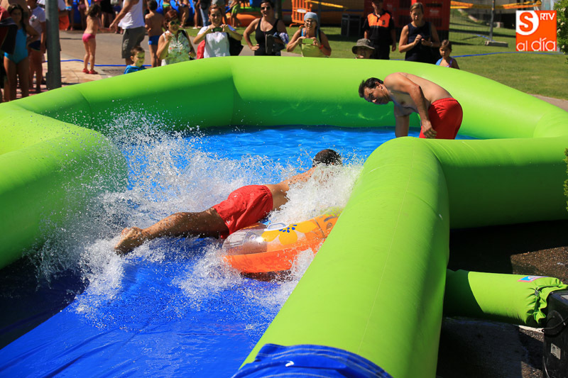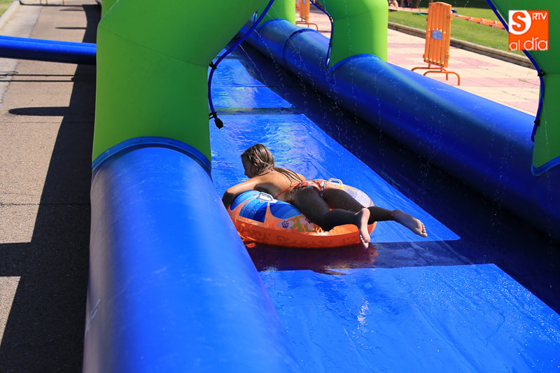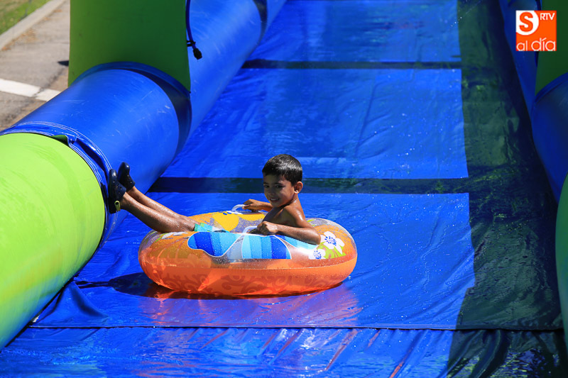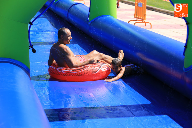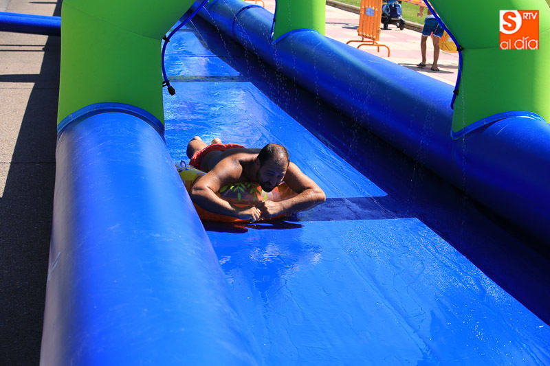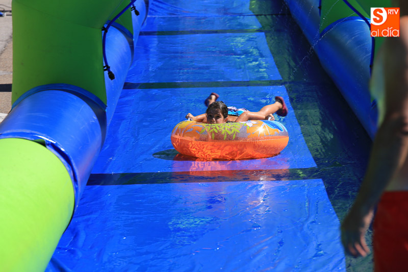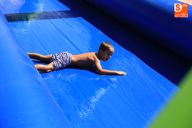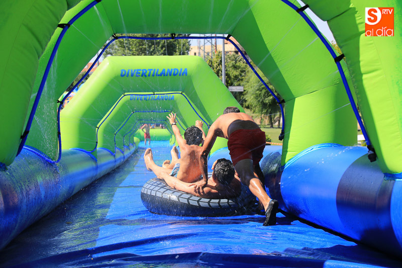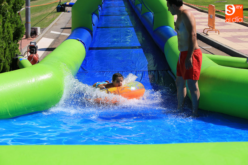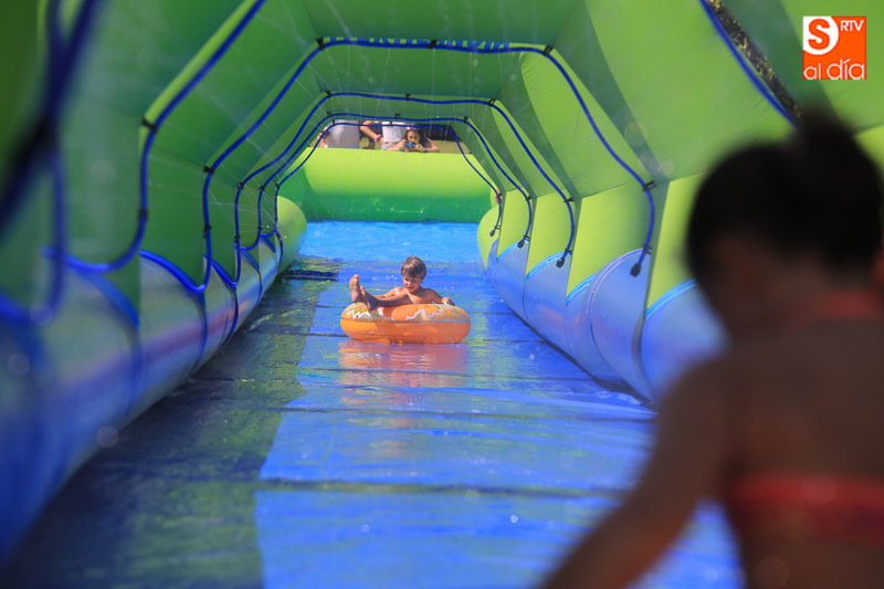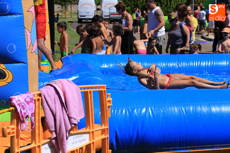 CARBAJOSA DE LA SAGRADA | La mañana ha estado protagonizada por un gran tobogán de 50 metros de largo instalado en el Prado de la Vega