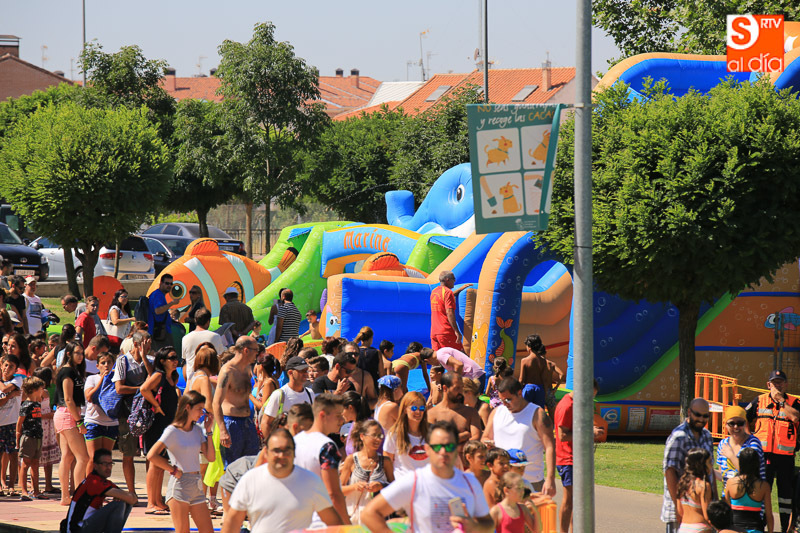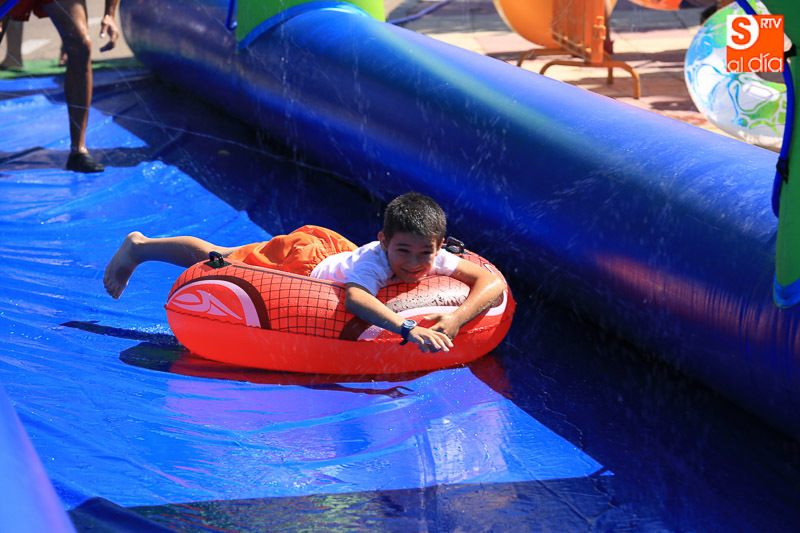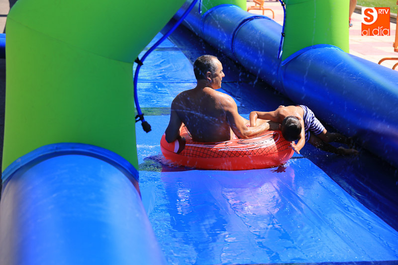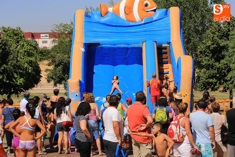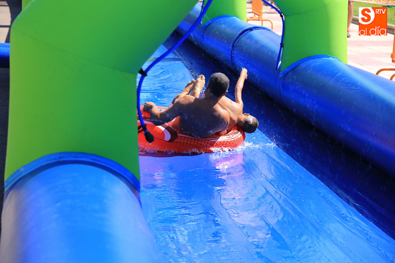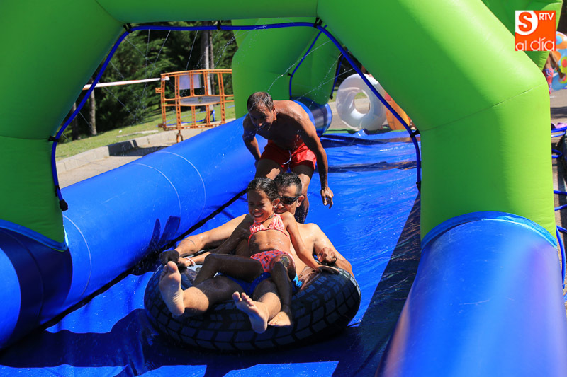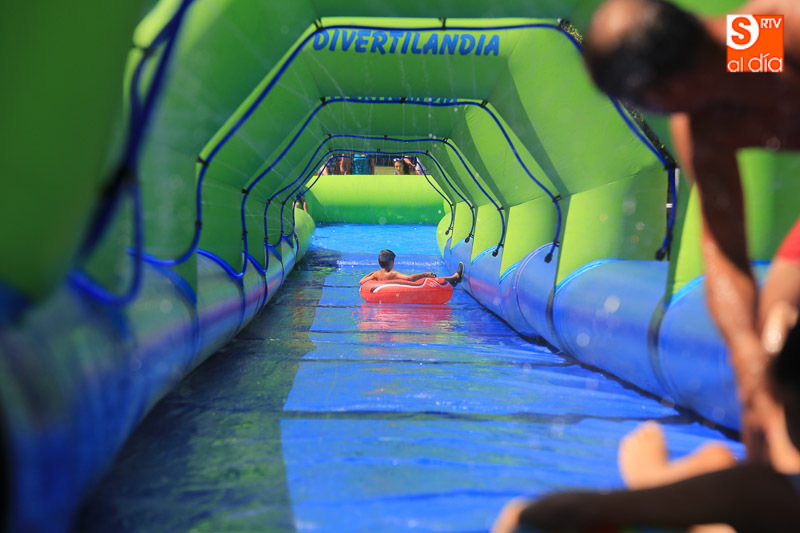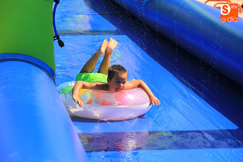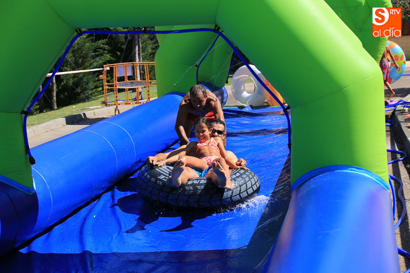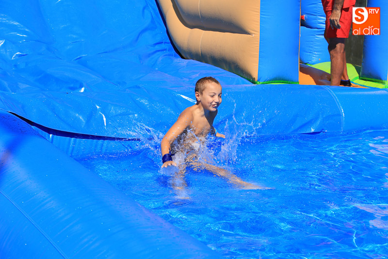 Las fiestas de Carbajosa continúan su desarrollo con el mejor ambiente posible y con actividades para todos los gustos. Los protagonistas de esta jornada del domingo han sido el tobogán de 50 metros de largo y el parque acuático en los que pequeños y mayores han disfrutado de una refrescante y divertida mañana. Las atracciones acuáticas continuarán por la tarde en el Prado de la Vega para el disfrute de todas las familias.