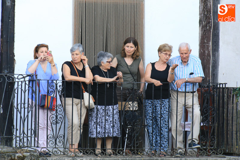La Alberca está de fiesta, el balcón del Ayuntamiento en plena plaza Mayor fue el escenario del emotivo pregón de José Antonio Sayagués, quien también se encargó de lanzar el tradicional chupinazo. Antes de comenzar con el discurso, . El conocido director y actor teatral, muy popular por su papel de Pelayo en 'Amar en Tiempos Revueltos', dedicó un pregón cargado de sentimiento a los albercanos, que fue largamente aplaudido por los presentes. El texto hizo referencia constante a la belleza serrana de la localidad y sus habitantes, con numerosas referencias literarias a Azorín. No faltaron tampoco las alusiones a la particular arquitectura de la localidad, que tantas alabanzas se ha granjeado. A continuación, se encargó de lanzar el chupinazo que señaló el inicio oficial de la programación festiva. Este acto marca el inicio de las fiestas en honor a la Virgen de la Asunción, que mañana vivirán su día más destacado con los actos religiosos en torno a la patrona.