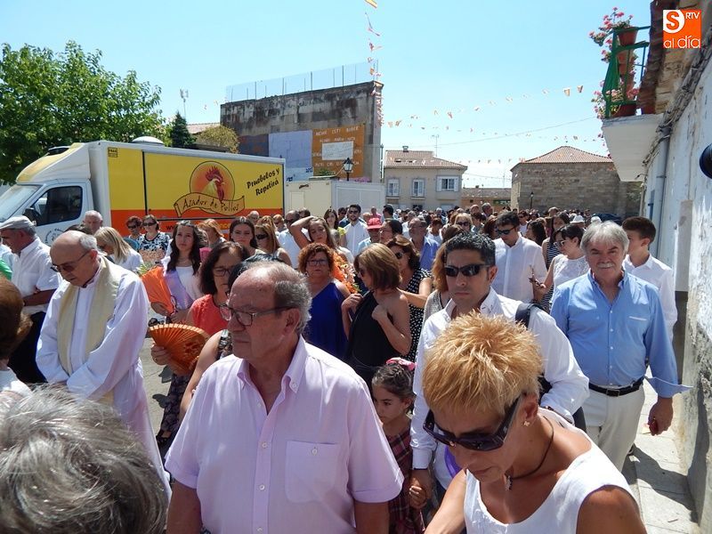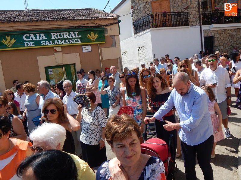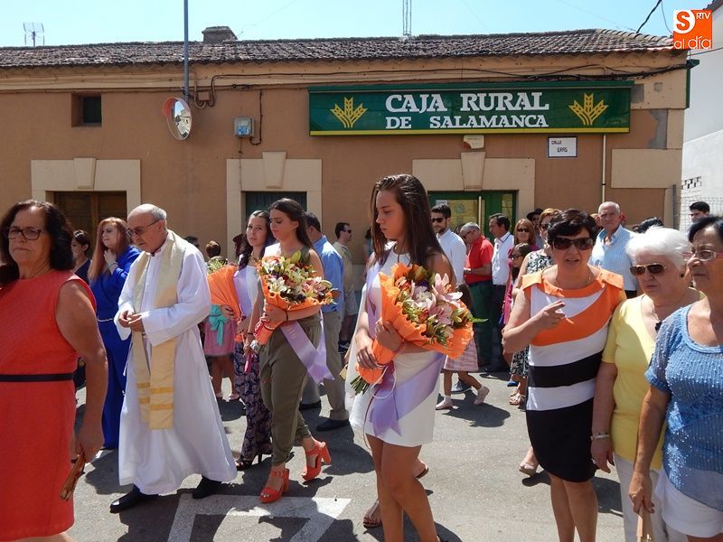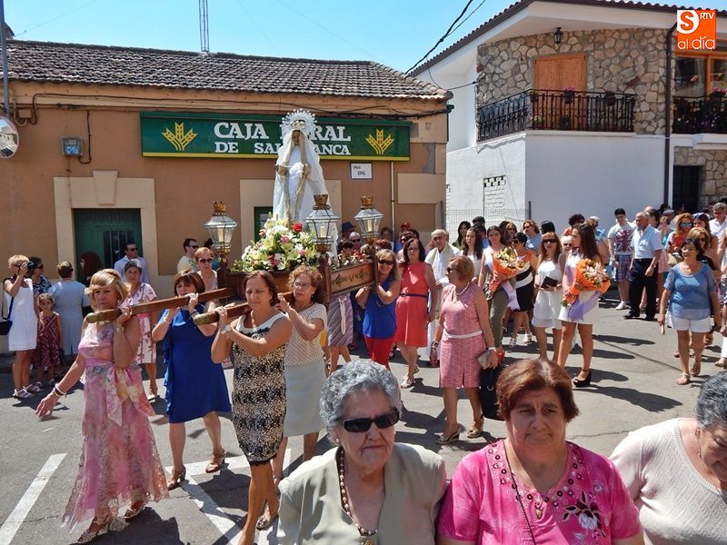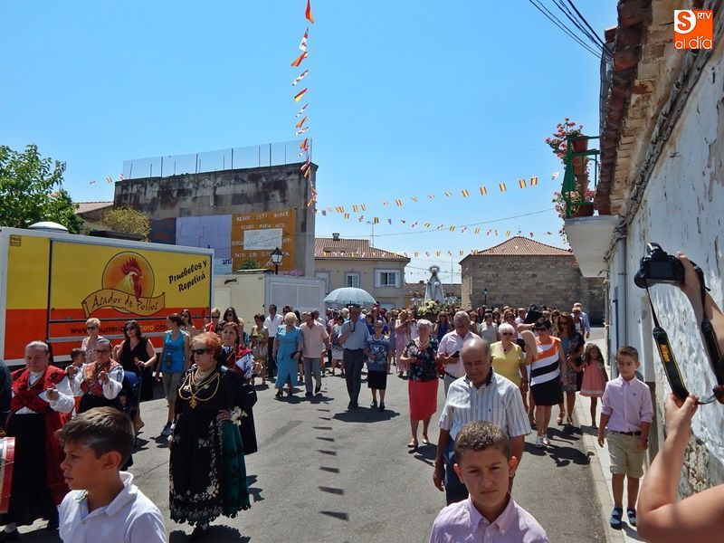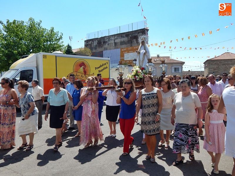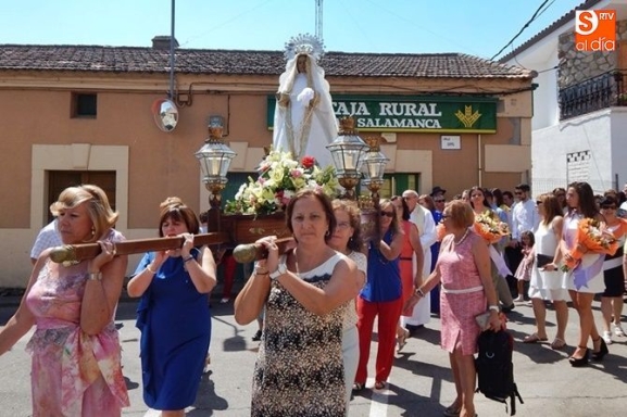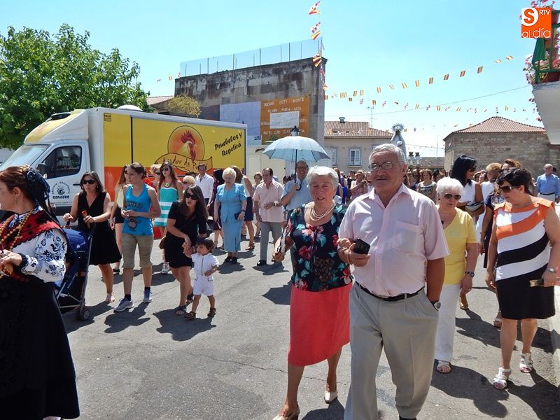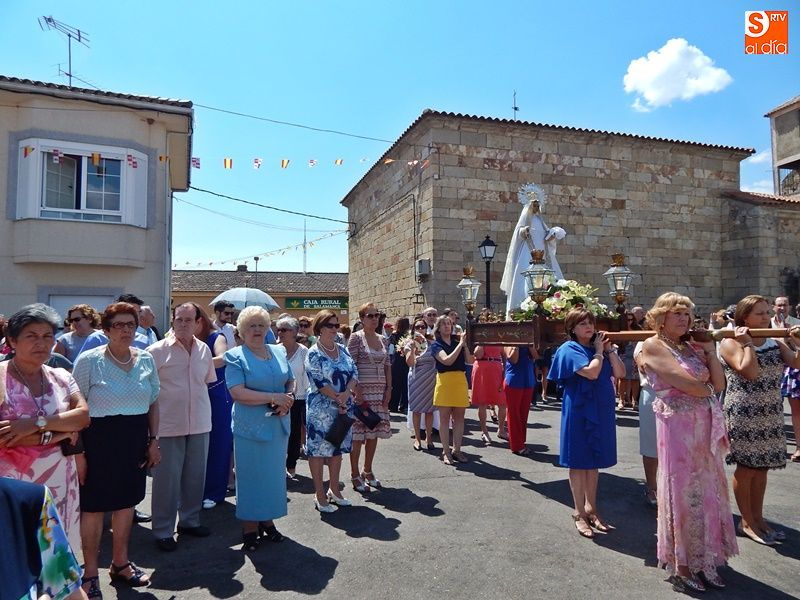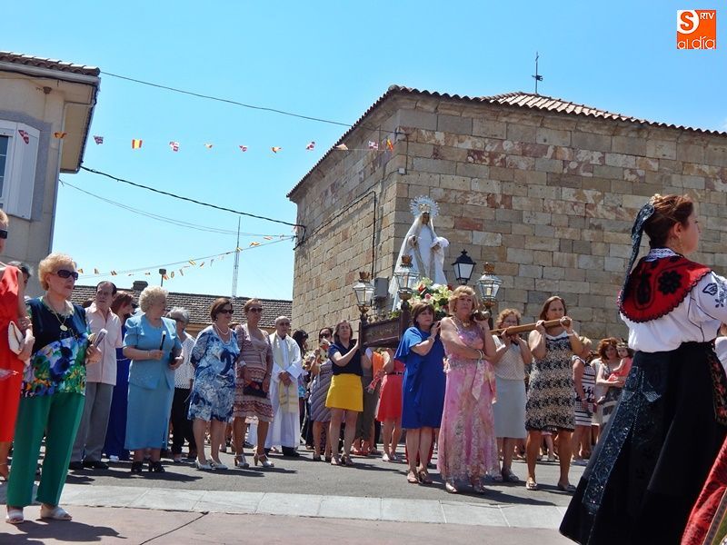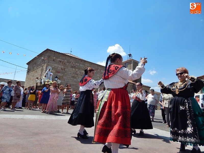ción de la misa cantada por el Grupo Malajota Folk y la posterior procesión con la imagen de Nuestra Señora de la Asunción, portada por las mujeres y a la que han rendido homenaje con los bailes charros.