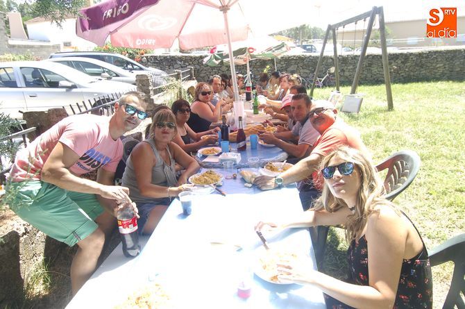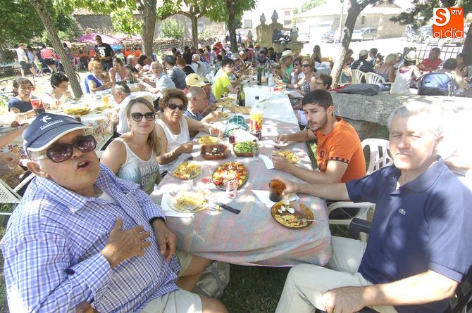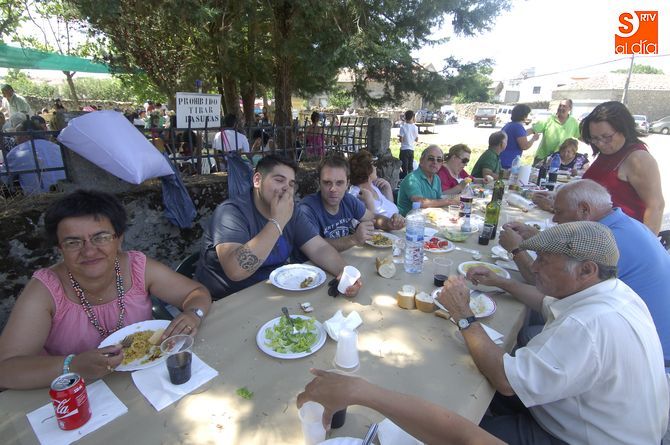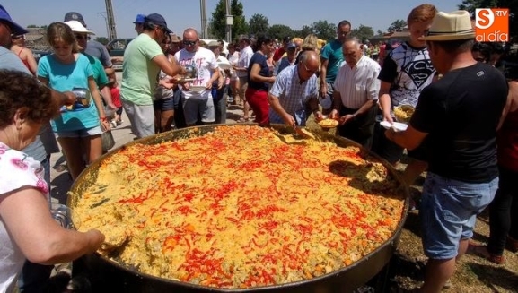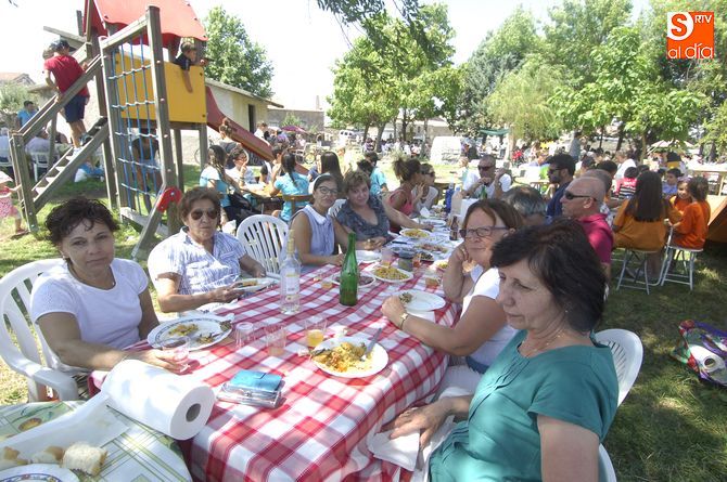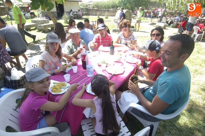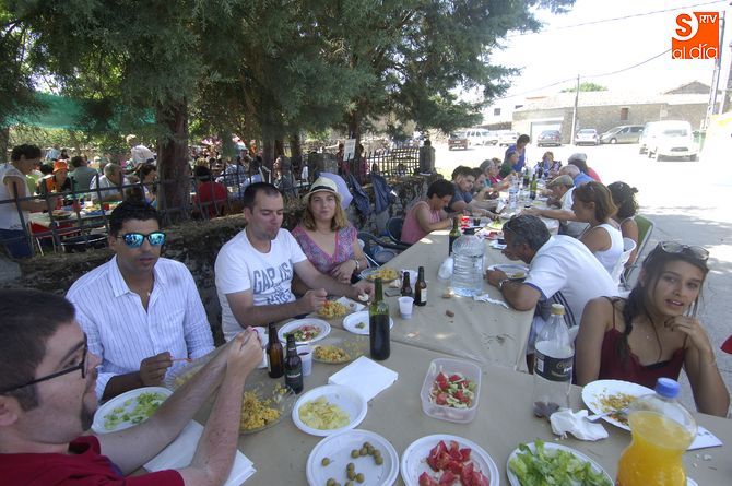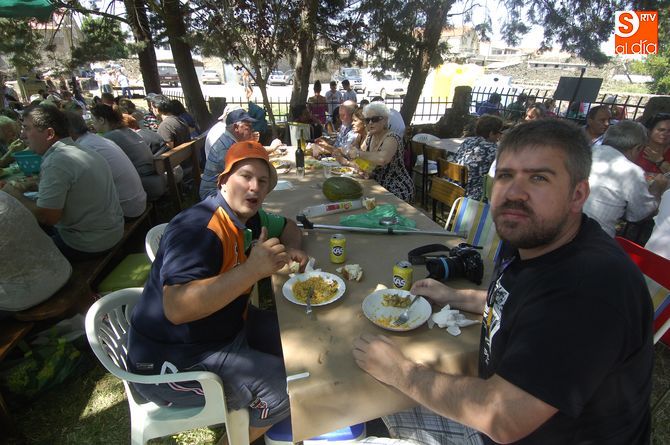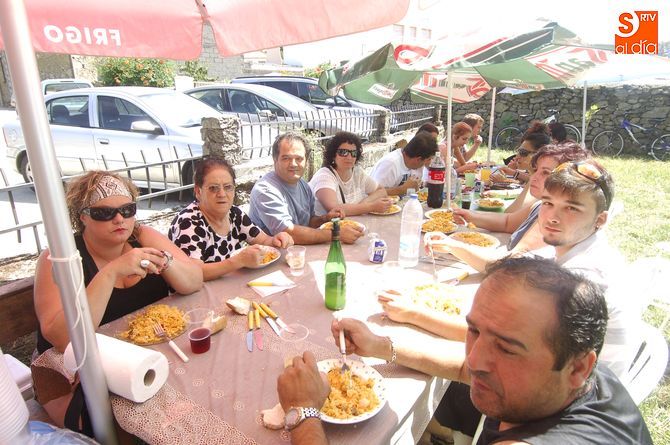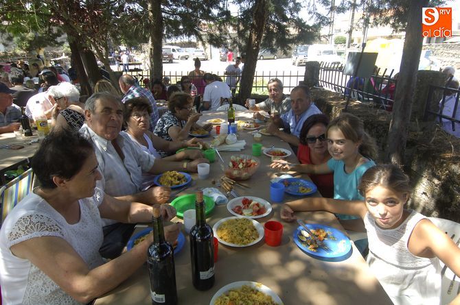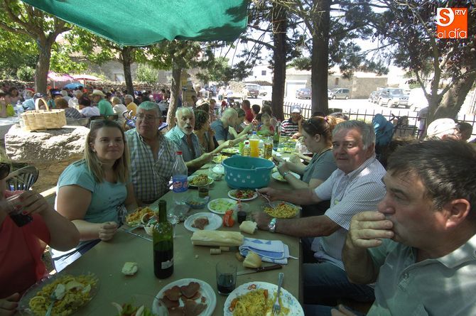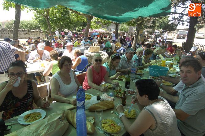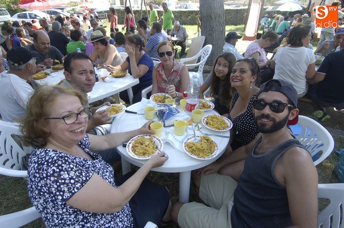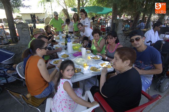 A la hora de comer, fue turno para disfrutar de una gran comida popular a base de paella, donada por la Asociación de Cazadores de Casillas, a la que asistieron más de medio millar de personas. La sobremesa fue muy animada, tocando unos niños la guitarra española y arrancándose varias personas a bailar.