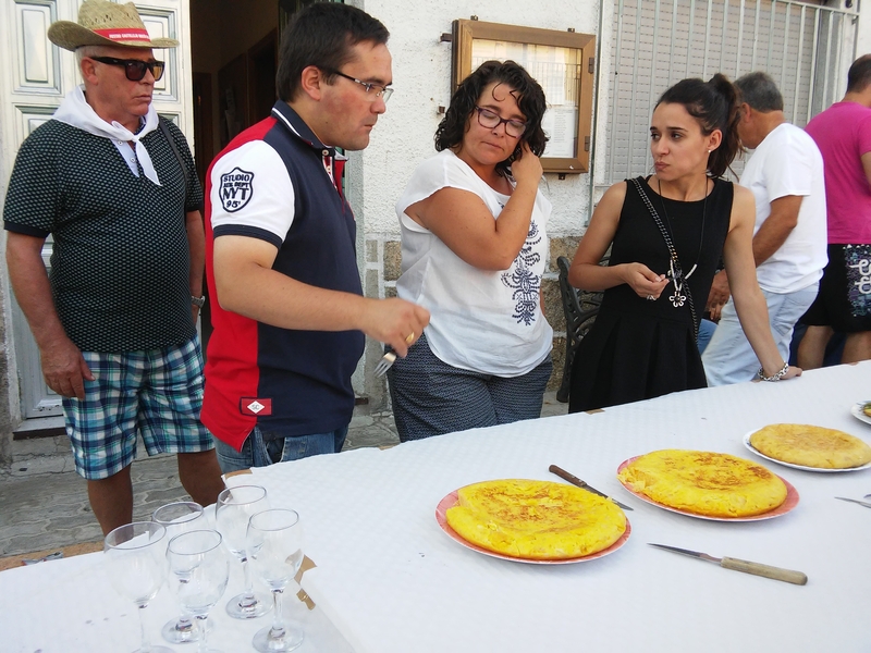 Ya en el tramo final de la tarde, se celebró un concurso de tortillas y cata de vinos en la Plaza Mayor, donde se escogió como los mejores la tortilla de Marisa y el vino de Cristian. Todos los presentes en la Plaza pudieron catar las tortillas y los vinos, así como la rosca subastada por la mañana, y embutidos de la tierra.
