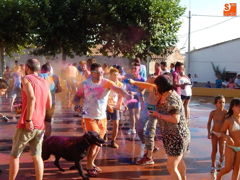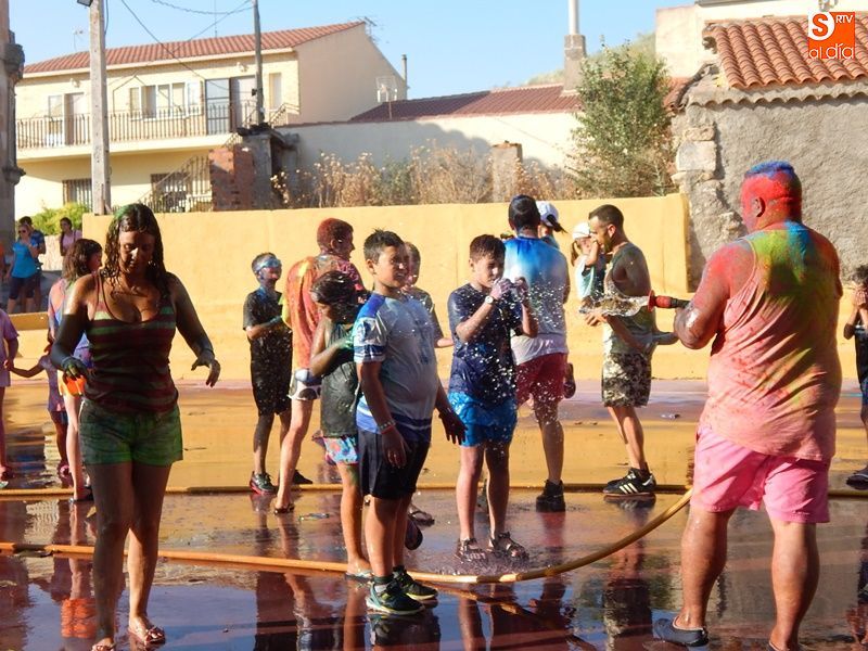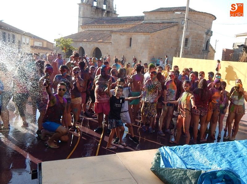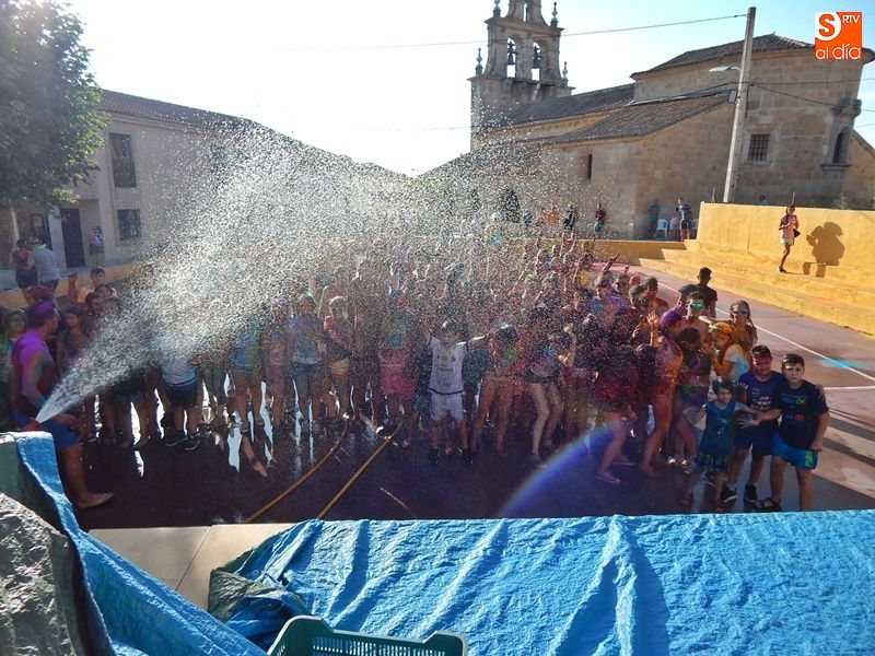 Despedida de fiestas refrescante y con mucho color en Almenara de Tormes. Al ritmo de la música del solista Payno, y como novedad en la programación de este año, niños y adultos se han embarcado en una auténtica guerra de polvos multicolores de la mano del Holy Festival, cuyo único requisito para participar ha sido las ganas de pasarlo bien.