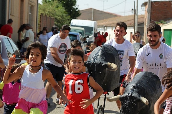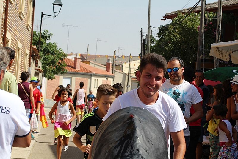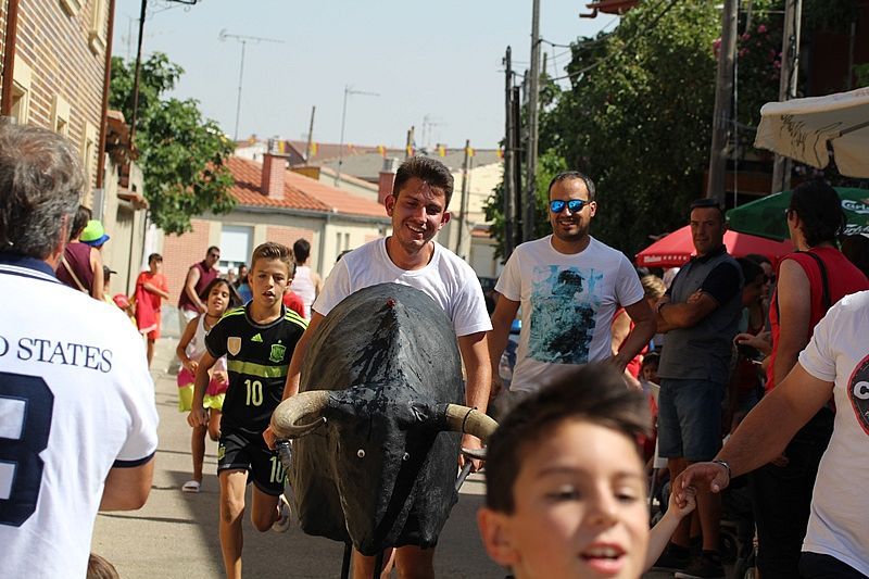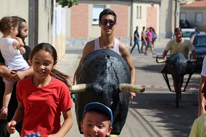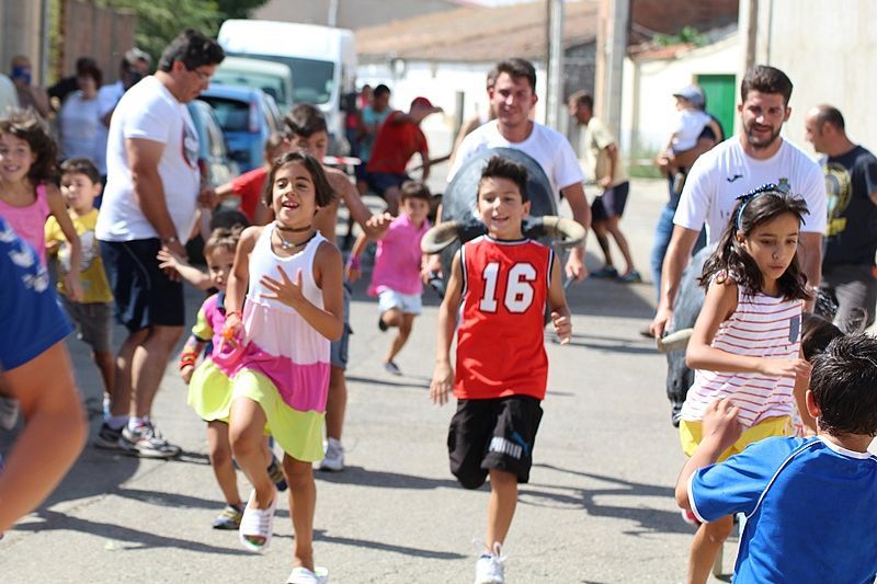 Las calles Santa María y El Cuerno acogieron este martes un encierro infantil con carretones, que ha hecho las delicias de niños, jóvenes y mayores. Las 'toras' realizaron un divertido recorrido de ida y vuelta detrás de los niños en plan 'San Fermín'-