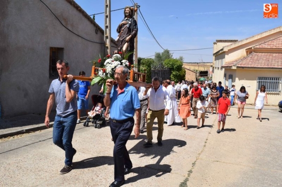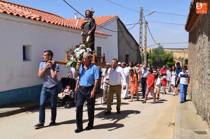 Los habitantes de Valdemierque acompañaron a su patrón en procesión en el penúltimo día de las fiestas del pueblo