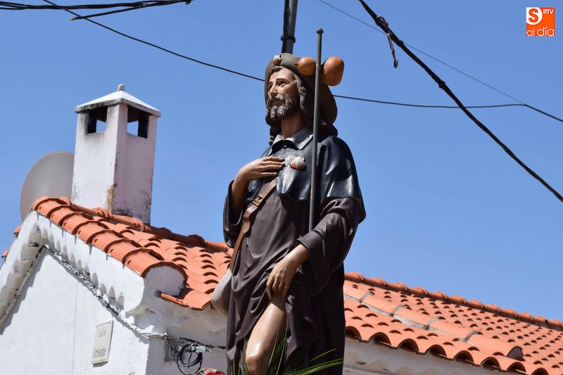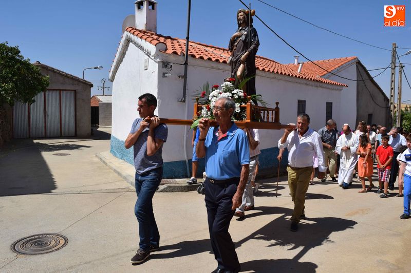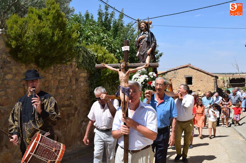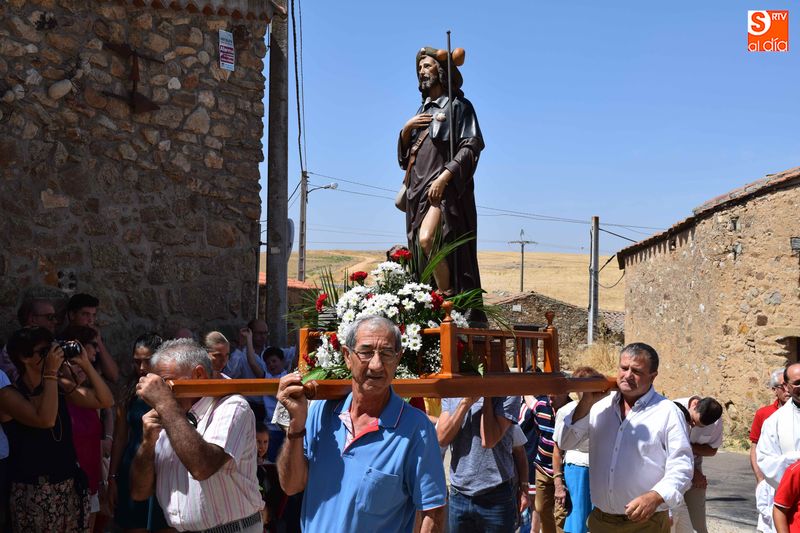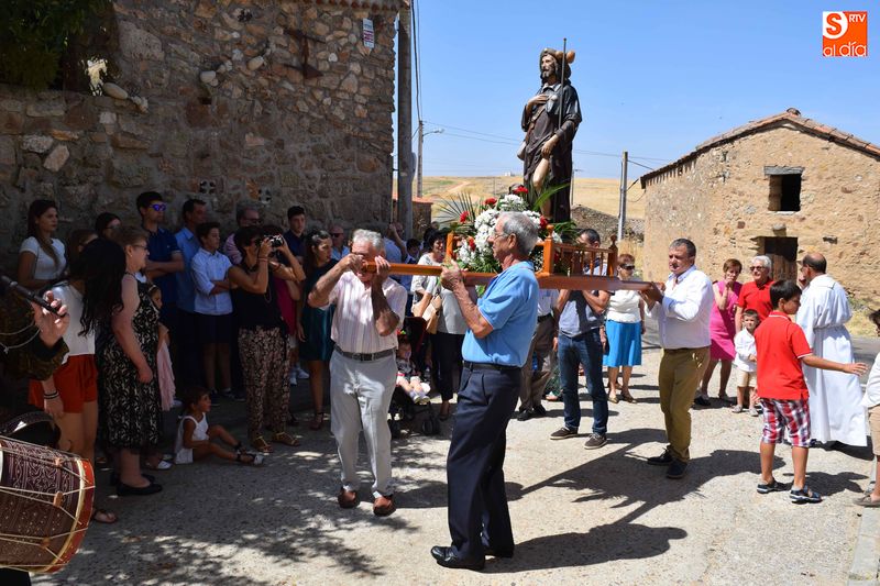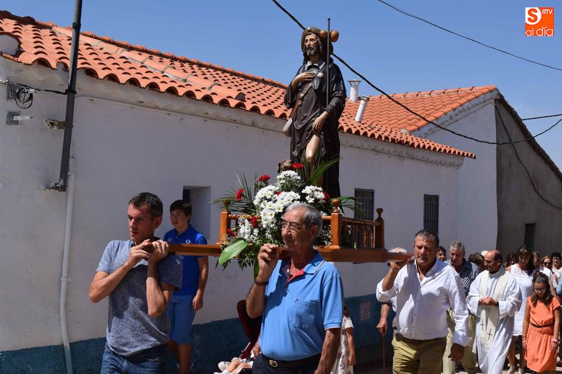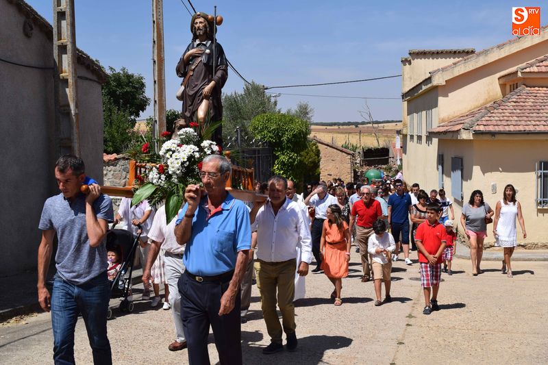 El municipio de Valdemierque cuenta las horas para despedir las festividades de este año en honor a San Roque. Hoy, en su penúltimo día de celebraciones, el patrón del pueblo salió en procesión por las calle de la localidad, acompañado por la música del tamborilero albense Bruno González, y la devoción de todos aquellos que acudieron para acompañar al santo durante la procesión.