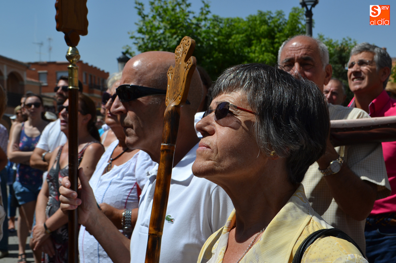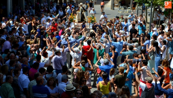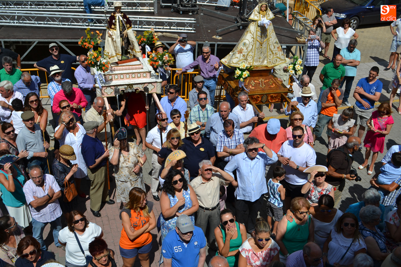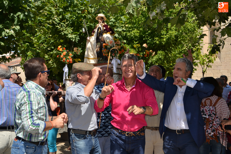 La festividad se iniciaba en la iglesia parroquial de Nuestra Señora la Virgen de la Encina en la que tenía lugar la solemne misa castellana, tras la que vecinos y visitantes se agolparon a las puertas del templo para recibir con vivas y bailes las imágenes del Santo y la Virgen de la Encina quienes, portados a hombros, iniciaron su peregrinar por las calles y plazas de la localidad, en un ritual único que se prolonga hasta las siete de la tarde, acompañados en todo momento por 'La Charra' a cargo del grupo Adobe Dulzaineros.