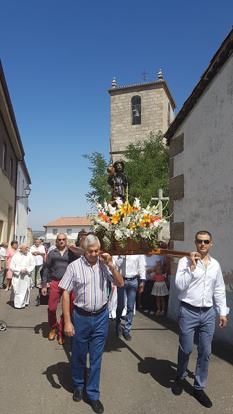 Ledrada se vistió de gala esta mañana para rendir homenaje a San Roque en el día grande de los festejos. Los actos religiocosos comenzaron a las 12:30 horas con la solemne misa en la parroquia local y continuaron con la la tradicional procesión, en la que no faltó la Coroporación Municipal y la Corte de Honor. Una vez devuelta la imagen del santo en el templo, los vecinos se preparan para celebrar una intensa noche en la que serán protagonistas el exciclista Ángel Arroyo Lanchas, que se encargará de pronunciar el pregón y la Corte de Honor, siendo elegida esta noche la Reina de las Fiestas. Los actos comenzarán a partir de las 21:30 horas.