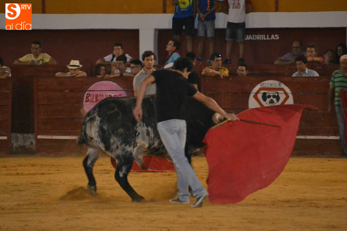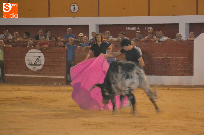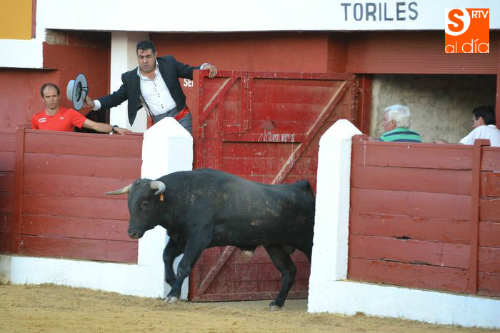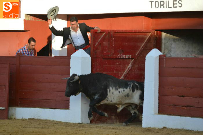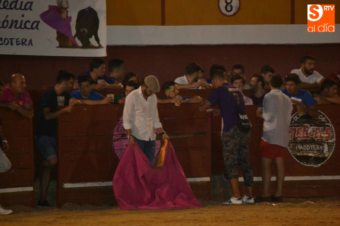 La tarde taurina en Macotera concluía con la suelta de un toro y dos novillos para torearlos al estilo tradicional, saltos y recortes.
