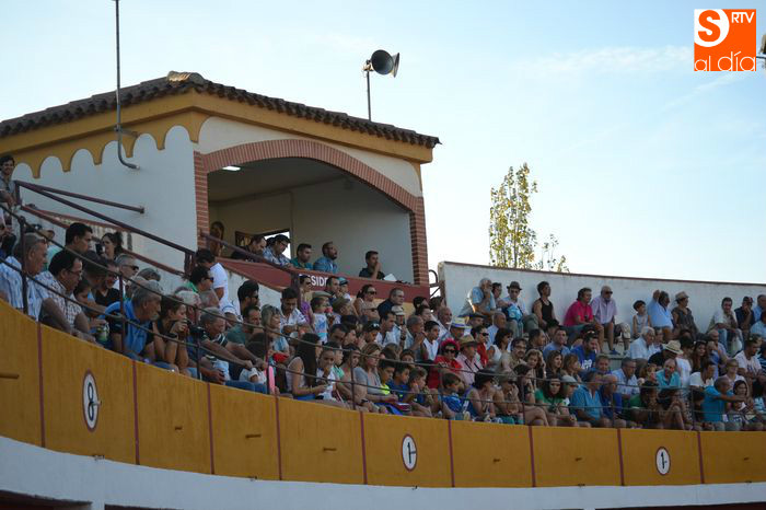 Tarde de intenso calor y media entrada fueron los prolegómenos de la primera tarde taurina en Macotera. Un festejo que comenzaba más tarde de lo previsto debido a la procesión que recorrió las calles de la Villa desde el mediodía pero que no impidió las ganas de buenas faenas con los astados de la ganadería Los Bayones.