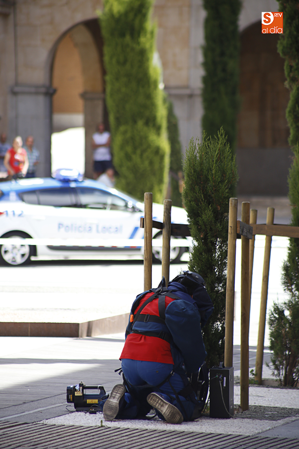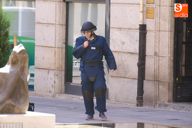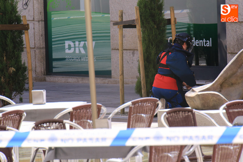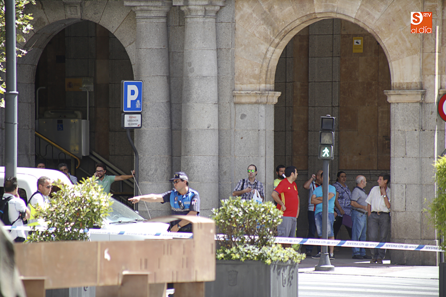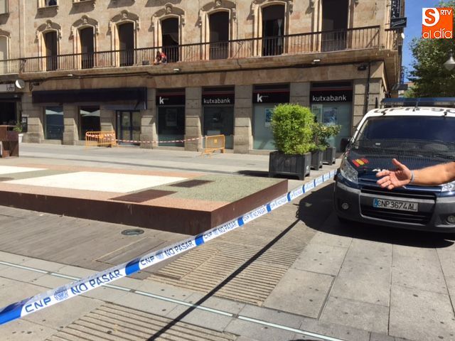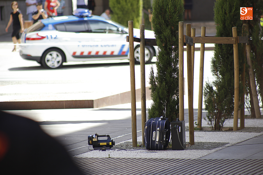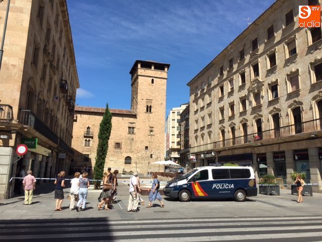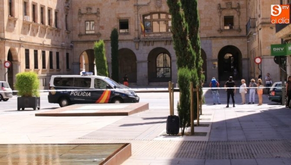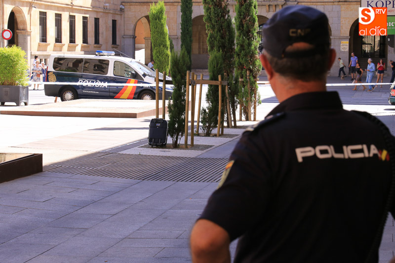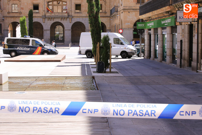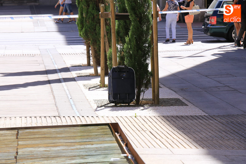 Falsa alarma y susto. La presencia de una maleta abandonada en la Plaza de la Constitución ha obligado a cortar el acceso a los peatones pasadas las 11.00 horas y hasta la actuación de los artificieros de la Policía Nacional.