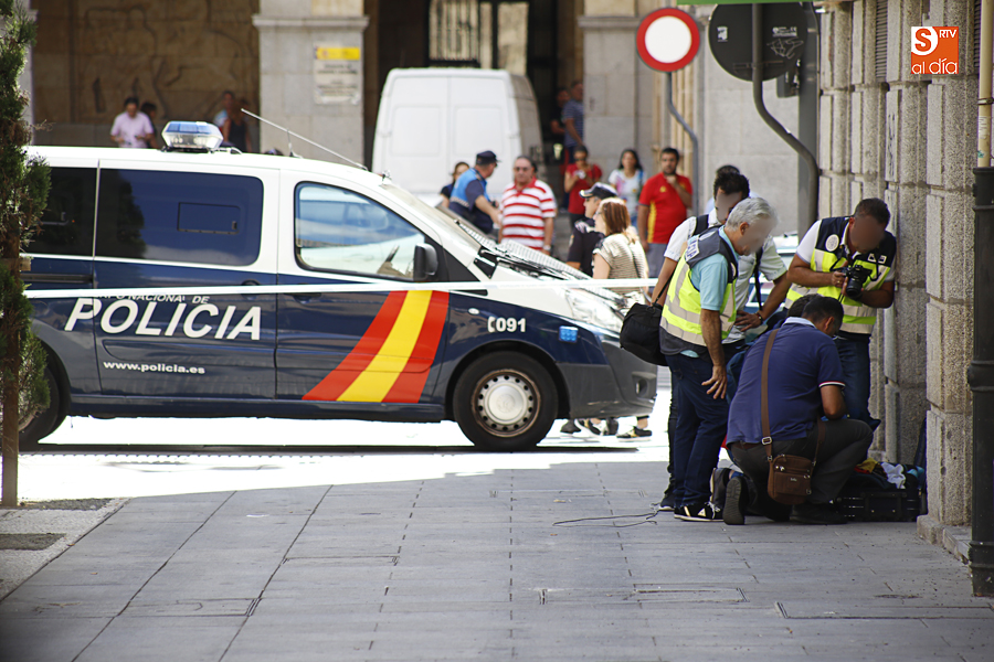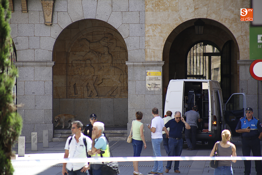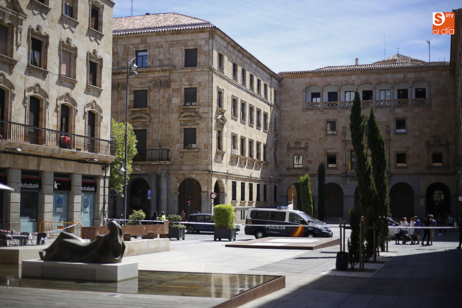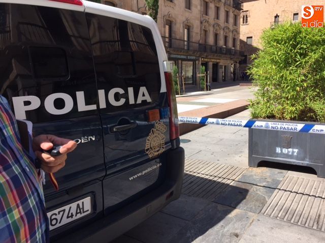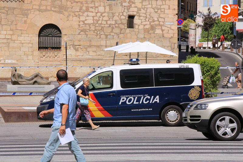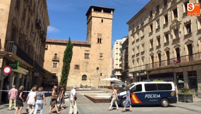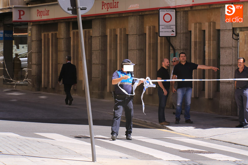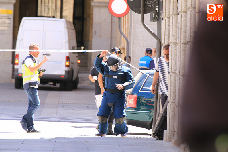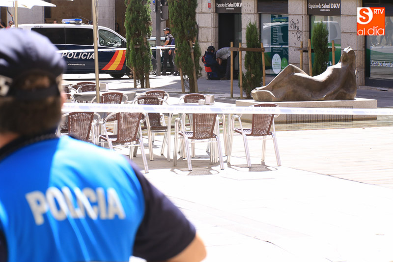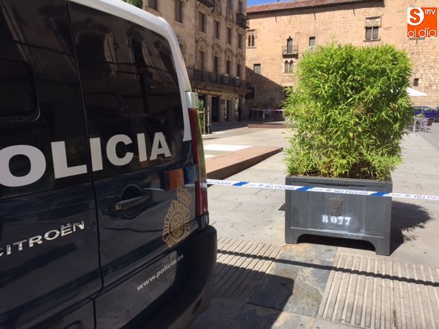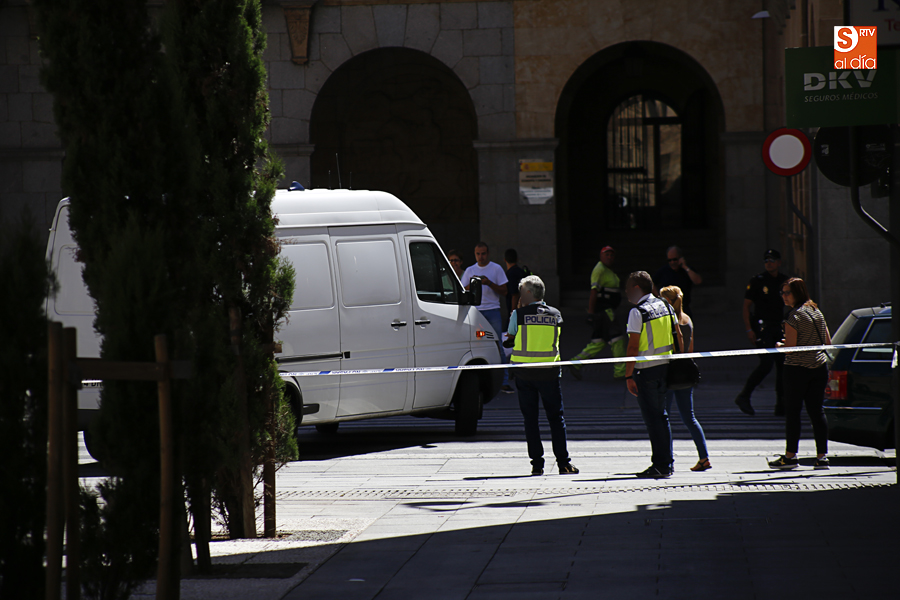 Falsa alarma y susto. La presencia de una maleta abandonada en la Plaza de la Constitución ha obligado a cortar el acceso a los peatones pasadas las 11.00 horas y hasta la actuación de los artificieros de la Policía Nacional.