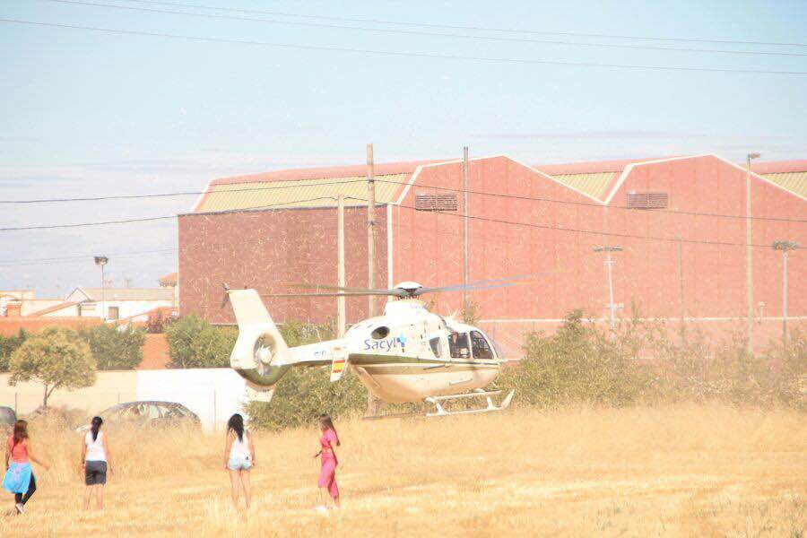 El helicóptero del Sacyl realizaba una inesperada visita a Macotera este viernes cerca del mediodía. Los sanitarios acudieron tras recibir la llamada de auxilio a los servicios de urgencia 112. Tras ser examinada por los facultativos, se procedía a realizar el traslado hasta un complejo hospitalario de Salamanca a una vecina de la Villa que ha sufrido una indisposición. Un sobresalto que generaba incertidumbre entre los vecinos, que a esas horas abarrotaban las calles tras la finalización del encierro a caballo vivido esta mañana.