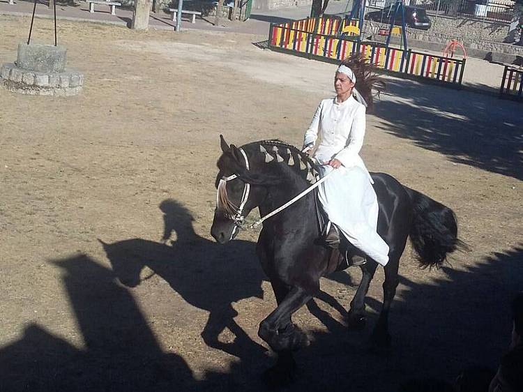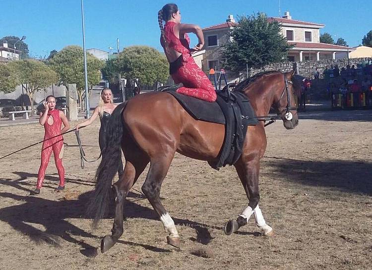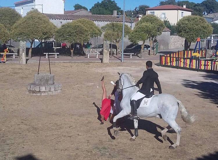Después de una larga noche, los vecinos de Cipérez continuaban este sábado con sus fiestas y dos nuevos acontecimientos; primero, el homenaje con un vino de honor que el Ayuntamiento tributaba a los mayores del municipio, colectivo representado en esta ocasión en la persona de Amable Hernández Sánchez, que por ser a sus 103 años el de mayor edad de la localidad recibía una placa de manos del alcalde de Cipérez, Francisco Alonso; y, segundo, el extraordinario espectáculo ecuestre que tuvieron la fortuna de presenciar los cipereños y aficionados de localidades próximas.