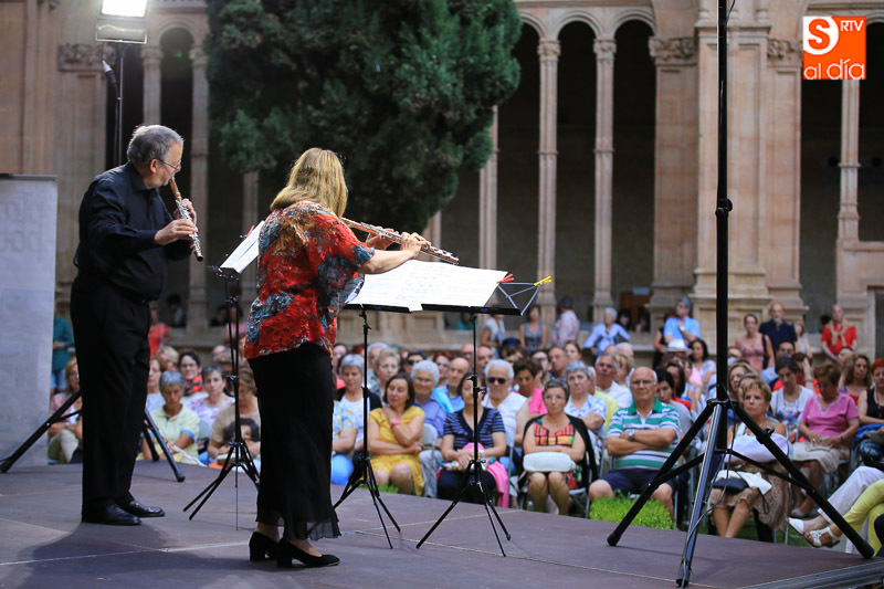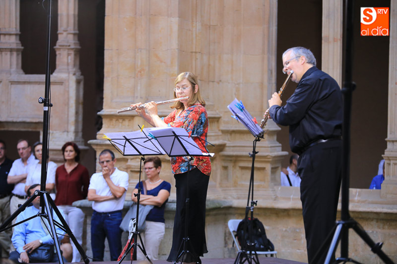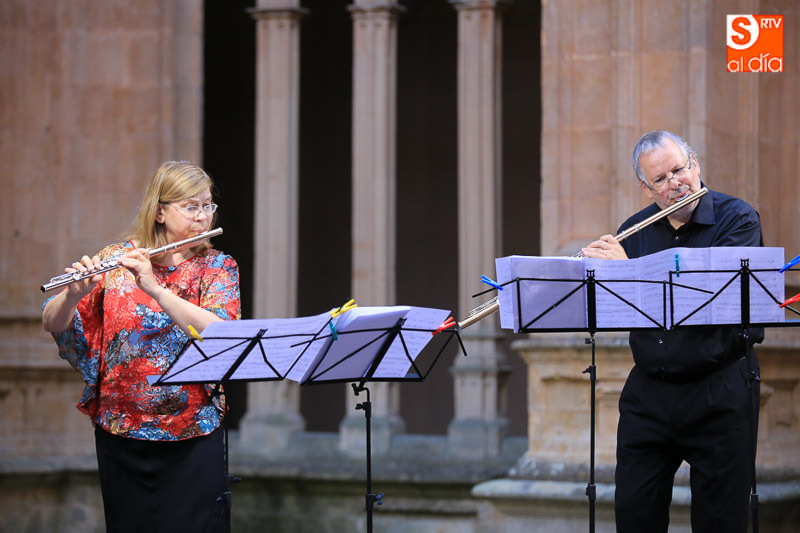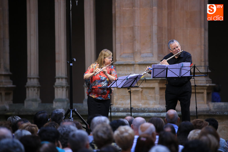 El Claustro de Reyes del convento de San Esteban ha sido escenario este sábado del dúo de flautas The Munich Flute Duo, formado por Elisabeth Weinzierl y Edmund Wächter, en el marco del programa municipal 'Salamanca, Plazas y Patios'.