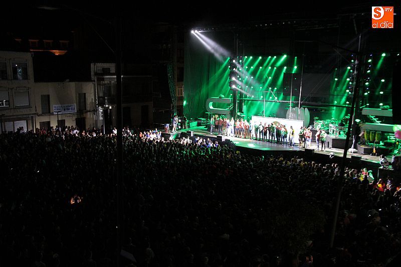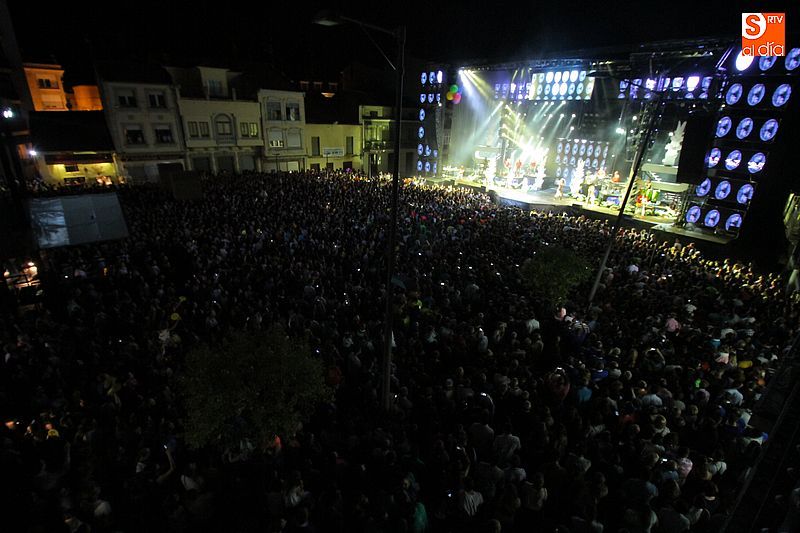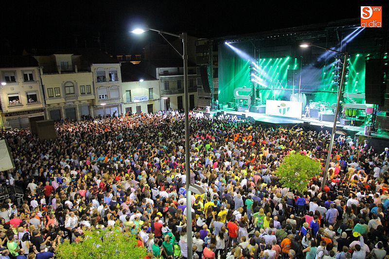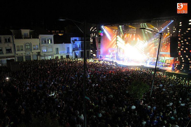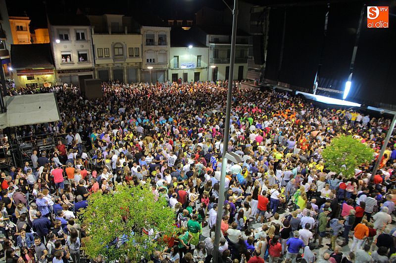 La actuación de la orquesta Panorama ha vuelto a ser la propuesta festiva de mayor éxito de los festejos patronales de la villa. Miles de personas se congregaron en la plaza Mayor para no perderse la actuación de la conocida formación musical que ya llenó por completo la villa el pasado verano. Miles de personas llenaron hasta el último rincón de la plaza y sus calles aledañas para no perderse detalle del espectacular despliegue con un gigantesco escenario lleno hasta los topes de música, imágenes, bailarines y cantantes.