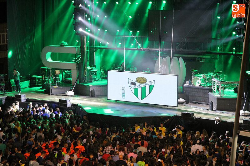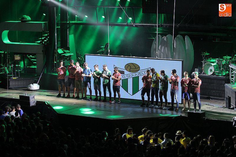 El Club Deportivo Guijuelo aprovechó la gran concentración de gente para presentar oficialmente al equipo que comenzará sus partidos de liga en breve. Los jugadores, junto con el entrenador Mateo García y el resto del cuerpo técnico fueron aplaudidos por los aficionados y aprovecharon el escenario para hacerse un 'selfie' con todo el público.