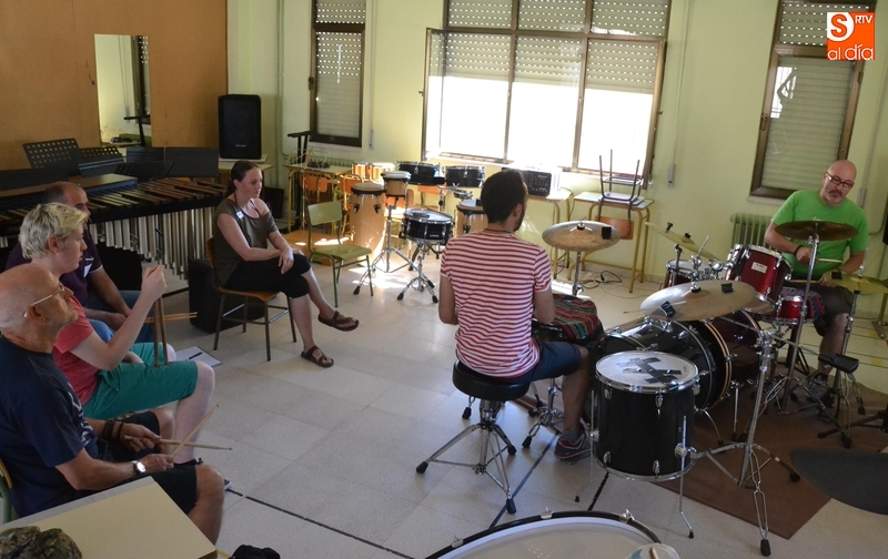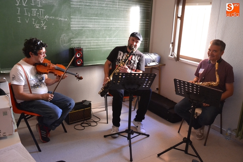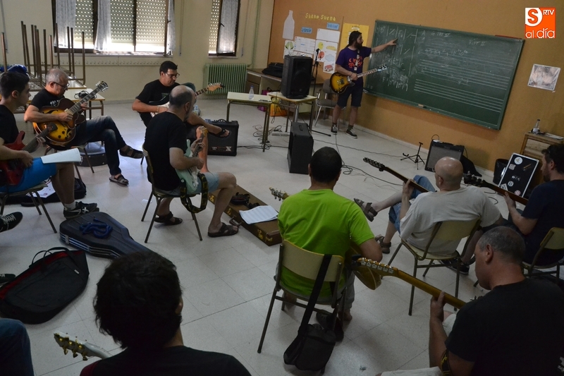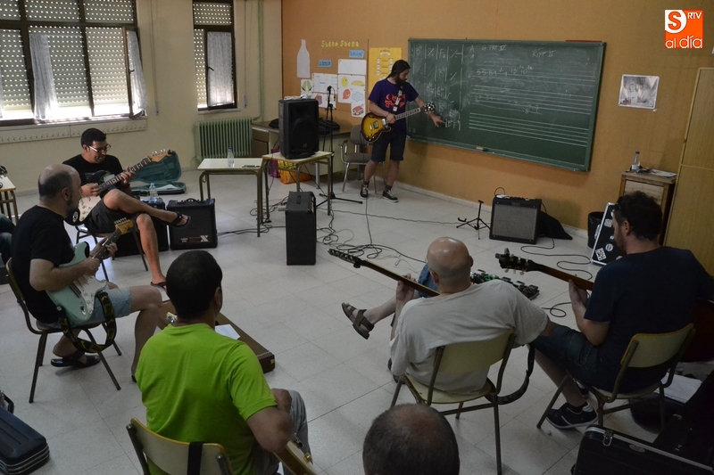 En el Taller ?que se desarrolla durante las jornadas del sábado y el domingo- están participando más de una treintena de alumnos de Ciudad Rodrigo, Salamanca, Madrid, Valladolid o Cáceres, que están recibiendo sesiones por grupos por parte de Pablo Sanpa (que imparte guitarra), Quique Gómez (armónica y voz), Pablo Bárez (batería), Sergio Bárez (bajo), y Dani Herrero (saxo).