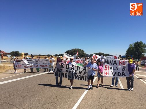 La Plataforma Stop Uranio se ha concentrado este sábado a las 13.00 horas en el cruce de La Fuente de San Esteban, cortando la N-620, en protesta por los proyectos mineros que quiere desarrollar la empresa australiana Berkeley en el oeste de la provincia de Salamanca. Con pancartas en los que se leían lemas como 'No al uranio, no a la mina, sí a la vida', 'Balneario de Retortillo, no a la mina', 'Ni mina, ni listillos', 'Hoy pasivos, mañana radioactivos' o 'Boada no quiere mina de uranio', vecinos del Campo Charro se han dado cita para mostrar su rechazo a este proyecto.