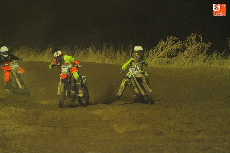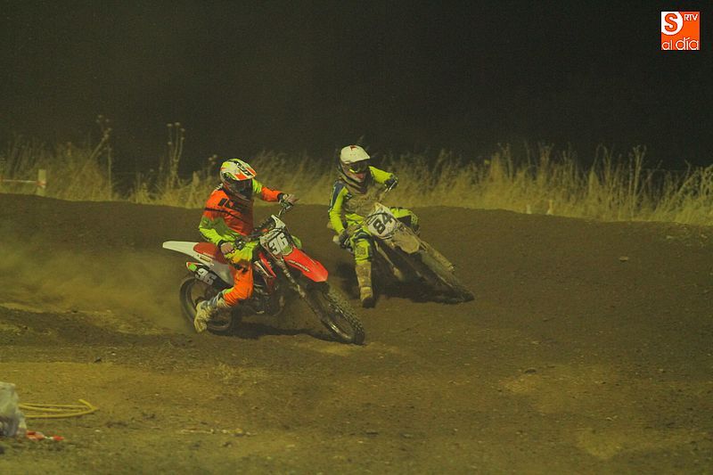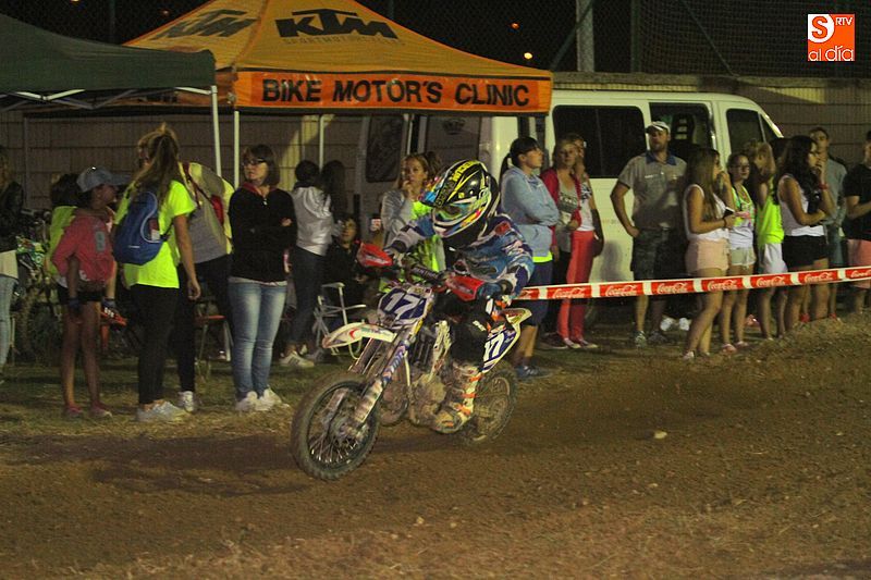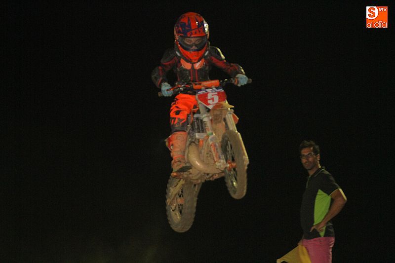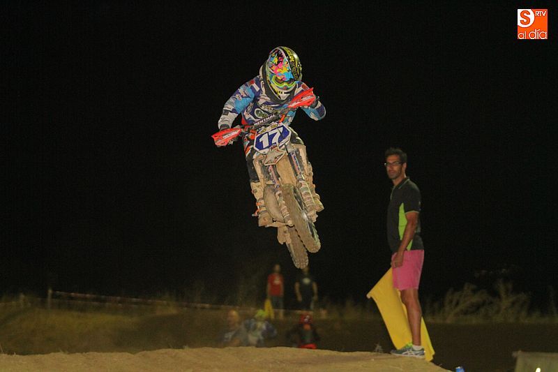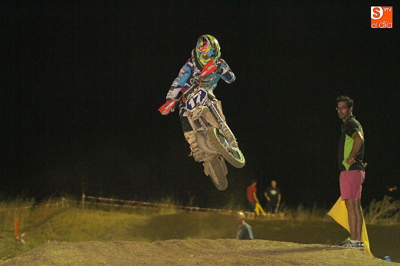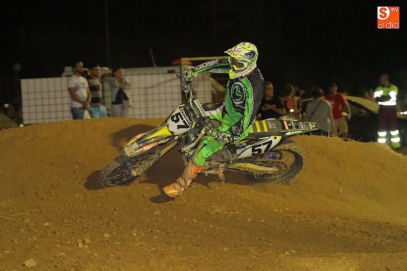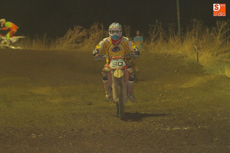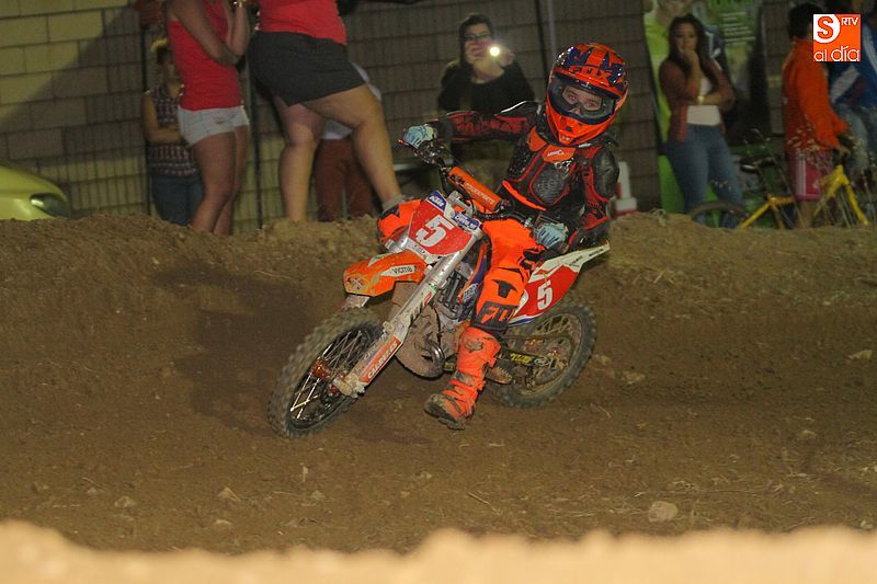 El I Supercross nocturno 'Villa de Guijuelo' contó ayer con dos figuras de alto nivel. Joan Pau Segura, el piloto mallorquín actual campeón de Europa en TM 2 tiempos y líder del campeonato Nacional de Sueorenduro, junto a Sara Coloret, subcampeona de España en la categoría de motocross femenino, eran dos de los más de 30 pilotos que participaban ayer tarde en esta carrera organizada por el Club
