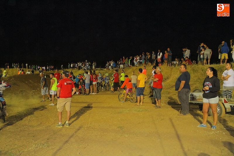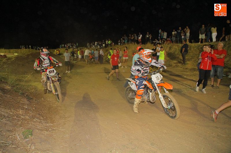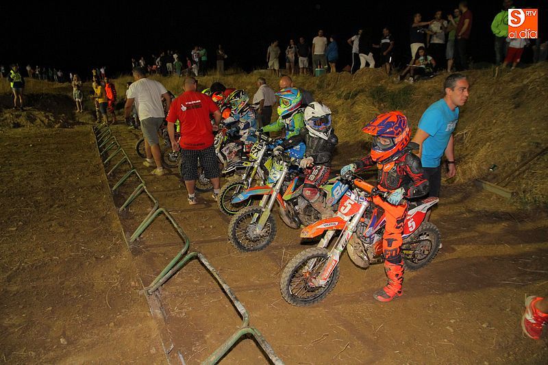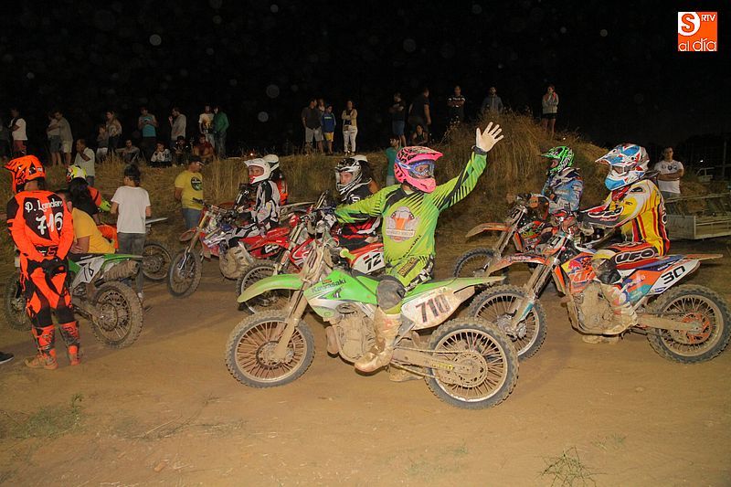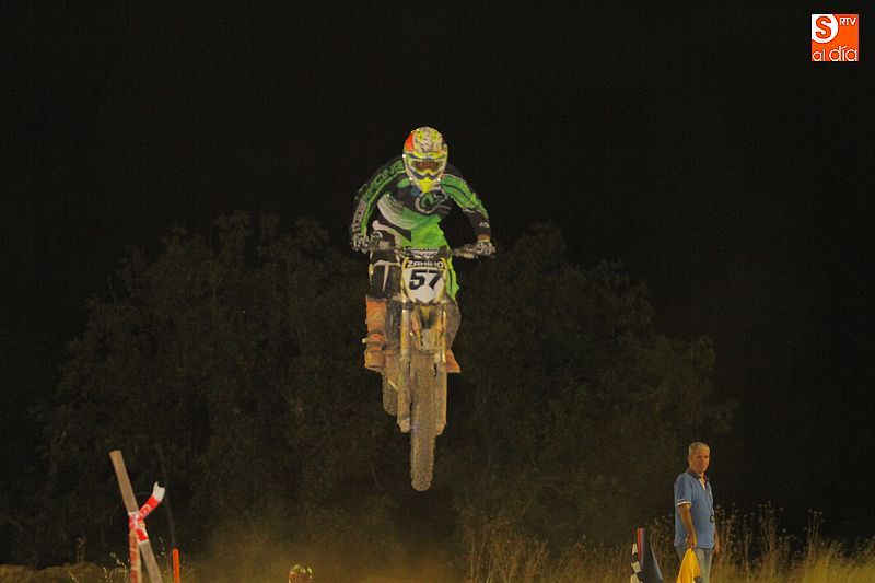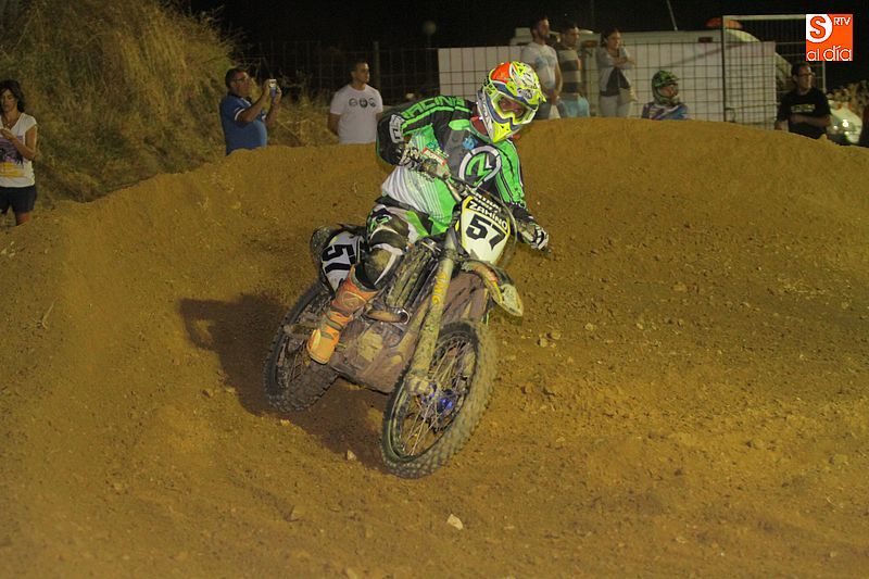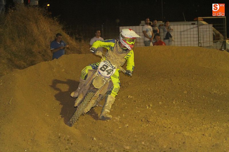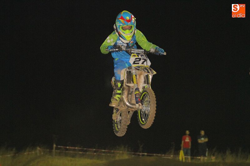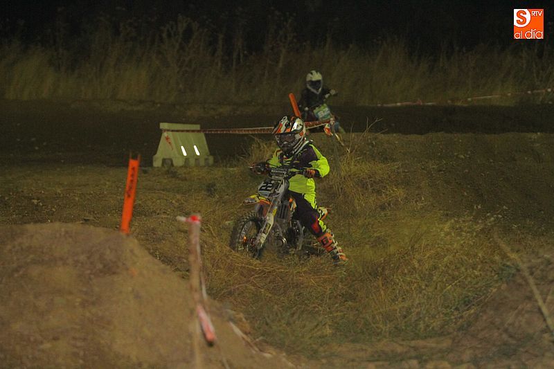 El I Supercross nocturno 'Villa de Guijuelo' contó ayer con dos figuras de alto nivel. Joan Pau Segura, el piloto mallorquín actual campeón de Europa en TM 2 tiempos y líder del campeonato Nacional de Sueorenduro, junto a Sara Coloret, subcampeona de España en la categoría de motocross femenino, eran dos de los más de 30 pilotos que participaban ayer tarde en esta carrera organizada por el Club