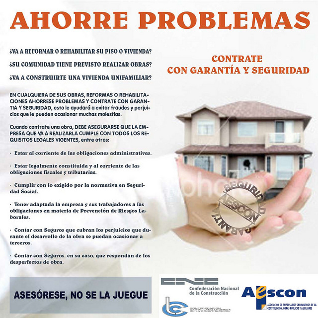 La Asociación de Construcción AESCON, integrada en CONFAES, está desarrolando una campaña informativa dirigida a las comunidades de propietarios de Salamanca con el objetivo de darles a conocer las obligaciones y responsabilidades que tienen como promotores de la realización de obras de mantenimiento y rehabilitación en edificios, y la importancia de contratar con empresas que cumplan con la normativa vigente.