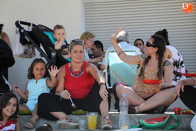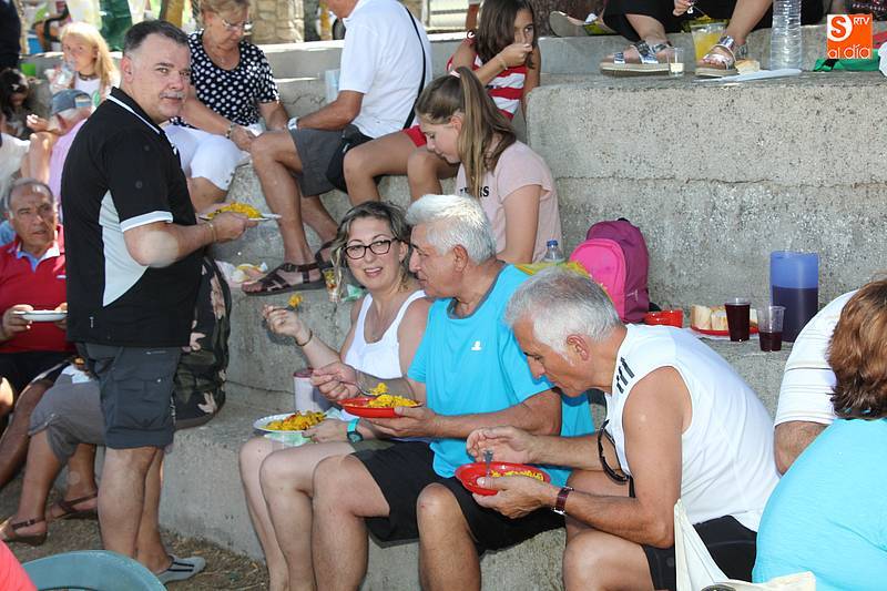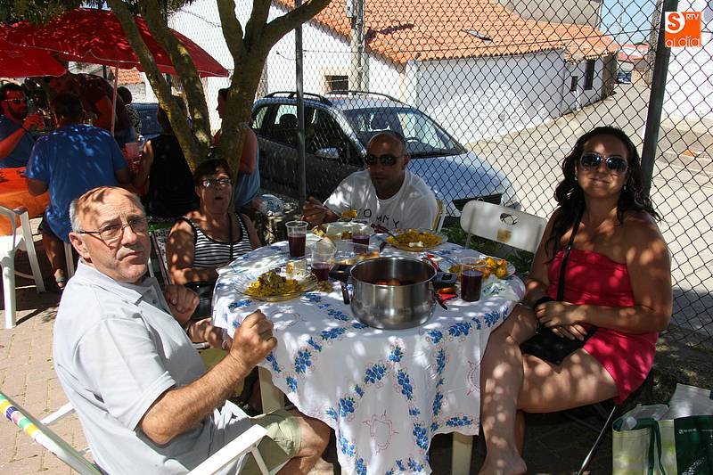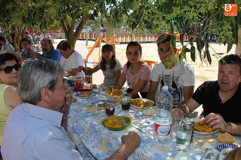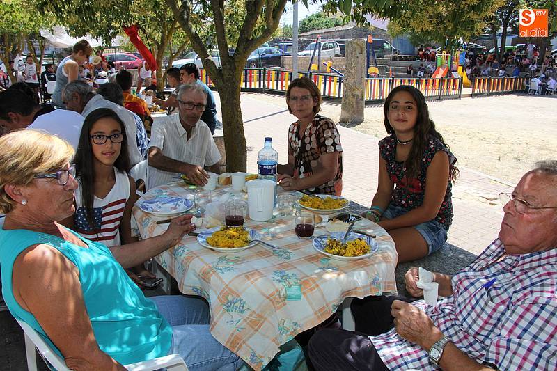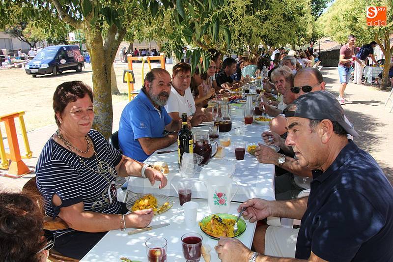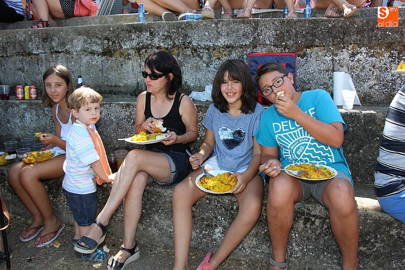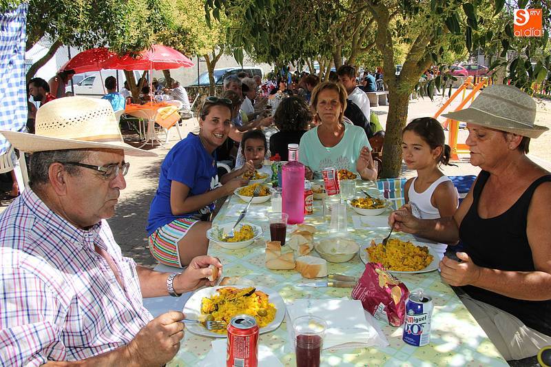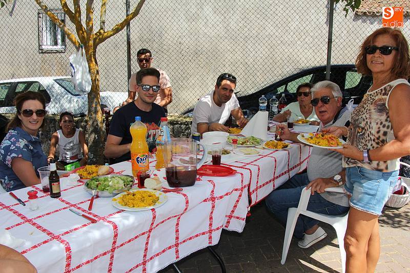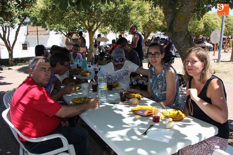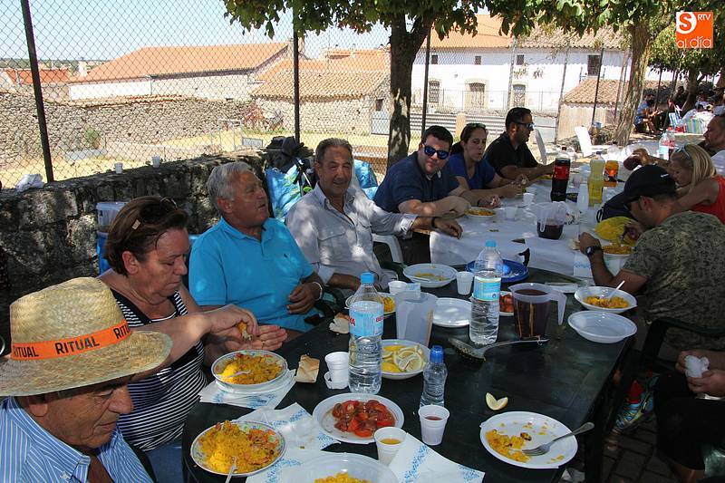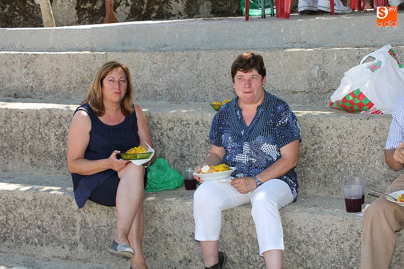 Junto al plato de arroz, preparado con todos los aderezos y de sabor exquisito, no faltó la fresca sangría, además de ensaladas de acompañamiento en algunas de las mesas, y sandía y melón de postre en algunos casos. Fue el momento de encuentro para familias y amigos después de unas intensas fiestas en las que hubo eventos para todos los gustos, destacando el espectáculo de doma y el siempre esperado desfile de carrozas cuyo primer premio recayó este año en las, como no, Brujas de Cipérez.