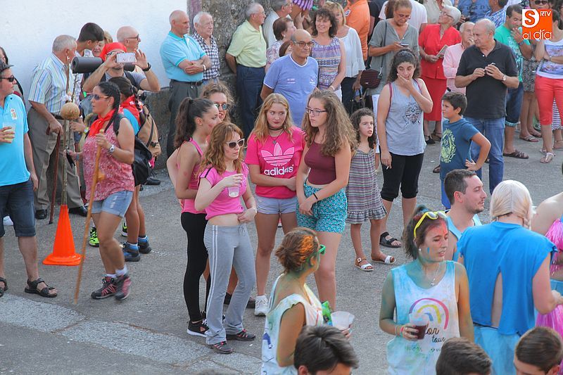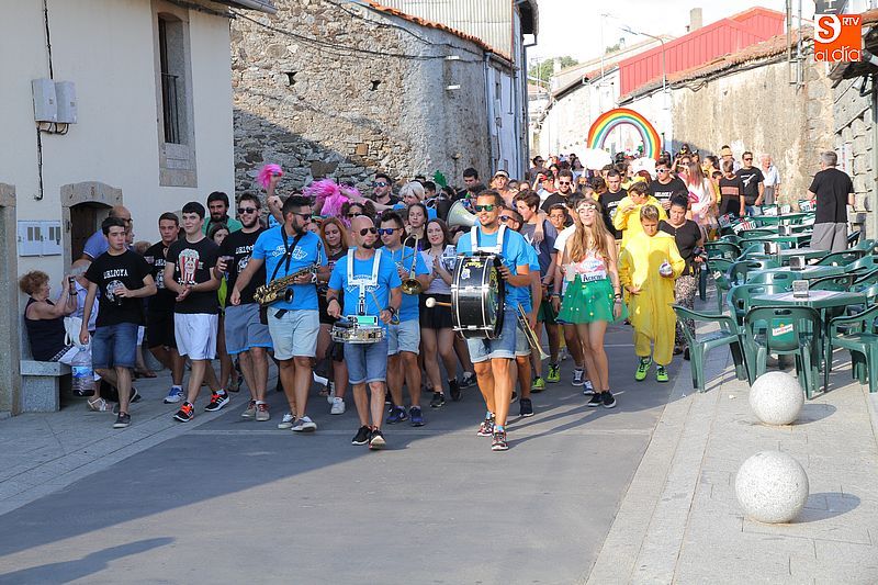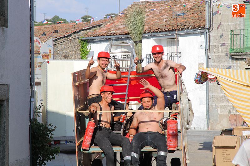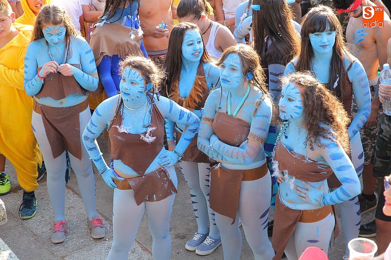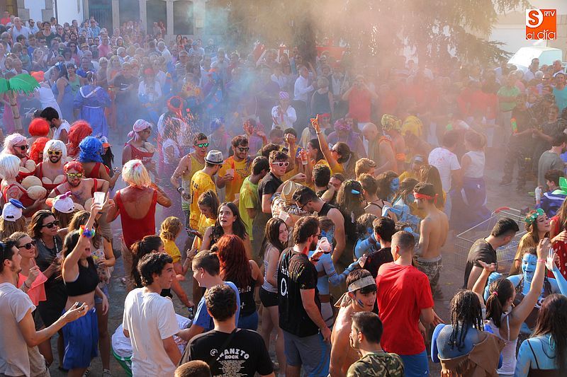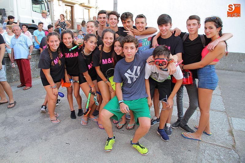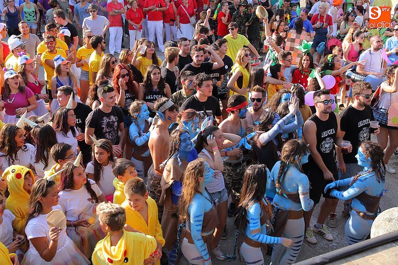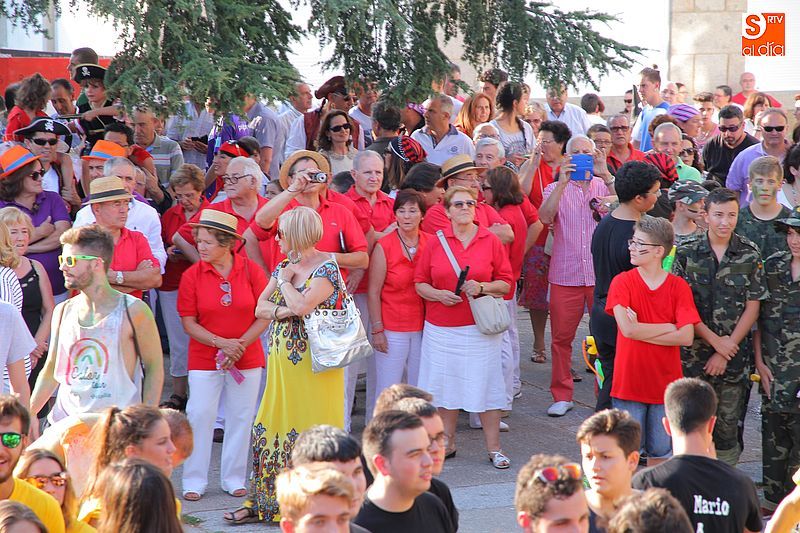 Los Santos está oficialmente inmerso en sus festejos. El chupinazo y el pregón de las fiestas marcaron esta tarde el inicio de la programación festiva, pese que se han ofrecido múltiples propuestas en los últimos días para todos los vecinos. Como manda la tradición santeña, las peñas de la localidad se reunieron en la iglesia de la localidad por la tarde para desfilar junto con la charanga hasta la plaza Mayor, escenario del pregón y el chupinazo. Los jóvenes acudieron disfrazados de las maneras más divertidas posible, desde Los Picapiedra a la mitología Hindú, los Naavi de Avatar o los famosos Pikachu. Una vez en el ágora, el exalcalde y durante muchos años profesor de la localidad, Francisco Lorenzo Carrasco, pronunció un emotivo pregón en el que habló sobre sus recuerdos como niño jugando en la plaza de la localidad, o la cantidad de vecinos que pasaron por su clase cuando ejerció en la escuela. El discurso inaugural de las fiestas finalizó con un verdadero pregón a la antigua usanza, anunciando el inicio de los festejos en honor a San Bartolo con los debidos 'vivas' que fueron coreados por todos los presentes. La plaza estalló en aplausos y vítores, dándose por iniciados los festejos.