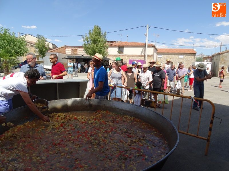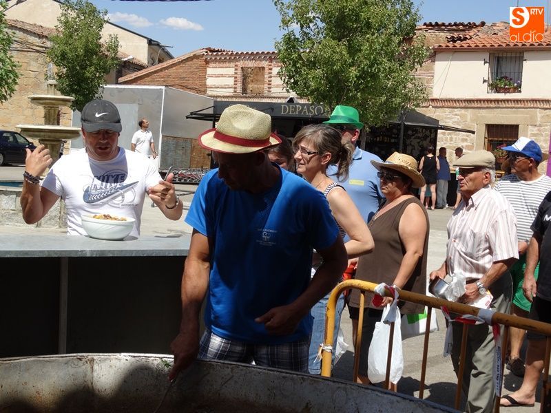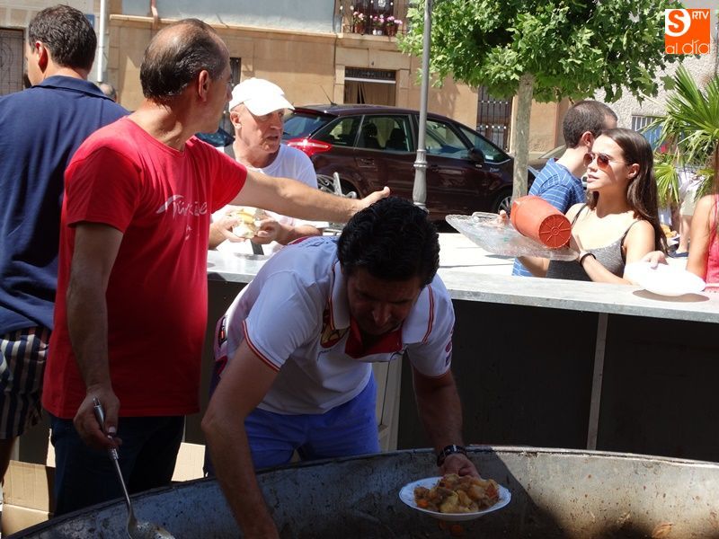 El calor y el hambre se han dado cita hoy en San Morales a la hora de comer. Los vecinos que se han acercado a coger su plato de caldereta han estado acompañados en todo momento por un sol de justicia que hacía sudar a todos los presentes. La música de los acordeones del I Encuentro de Acordeón Rural ha sonado de fondo mientras se repartía la comida, animando y sirviendo de anticipo del concierto que Raúl Díaz de Dios ofrecerá por la noche.