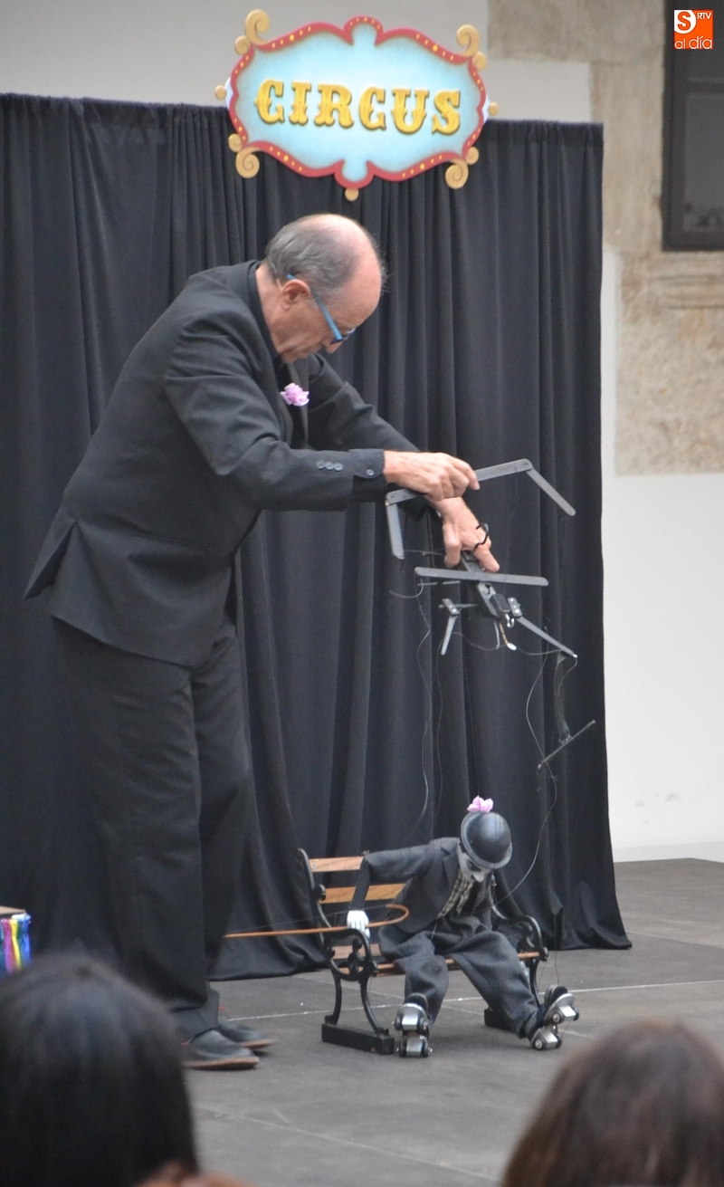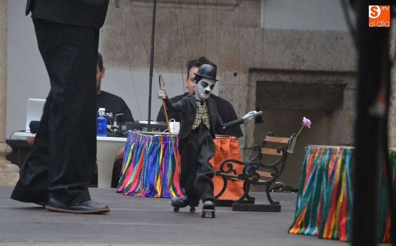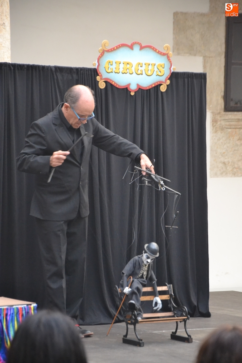 El siguiente espectáculo de la tarde se pudo ver en un emplazamiento poco habitual, el patio del claustro del Palacio de Montarco. Allí el titiritero Jordi Bertrán mostró su maestría para contar, englobadas bajo el título de Circus, tres pequeñas historias tituladas El Sueño de Charlot, Fratel.lo i Titina, y Toti, en las que también salieron a relucir las relaciones humanas entre varios de los protagonistas.