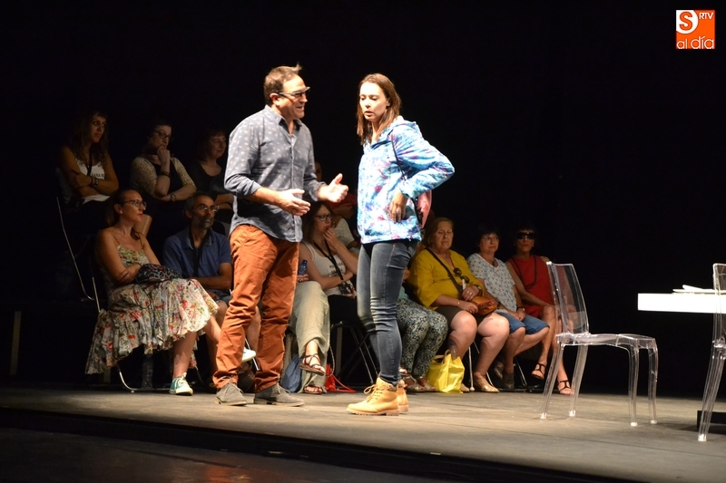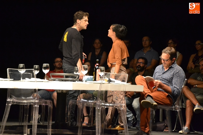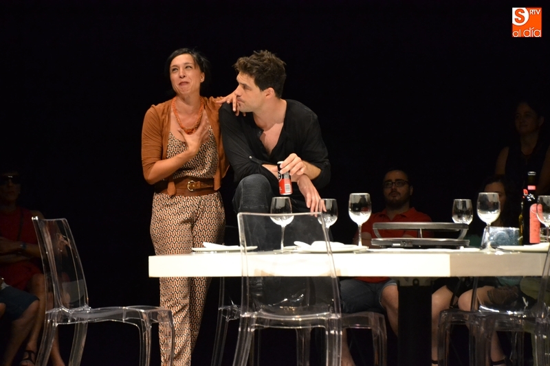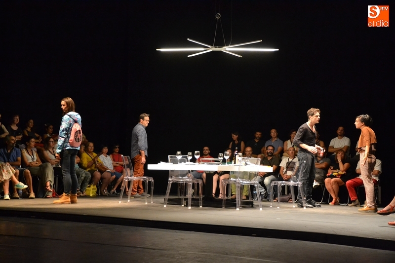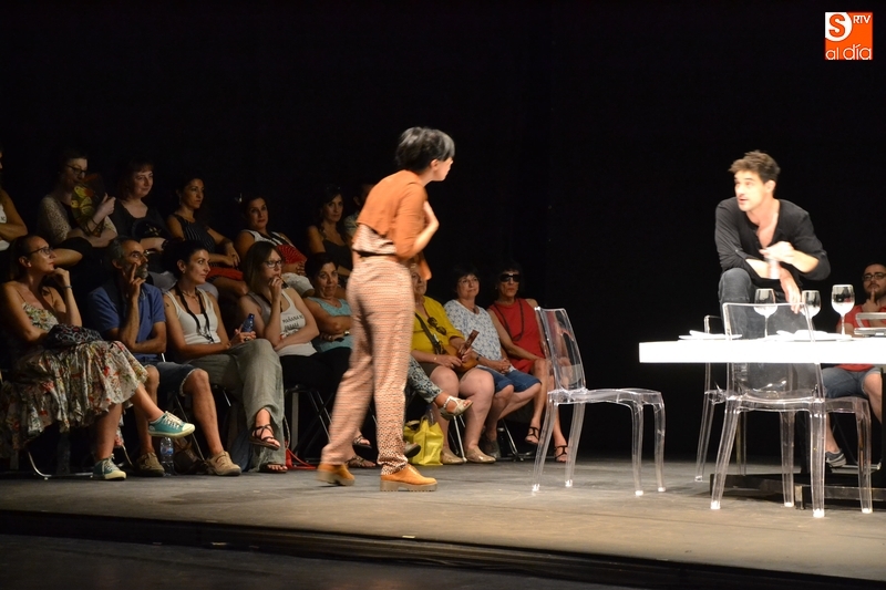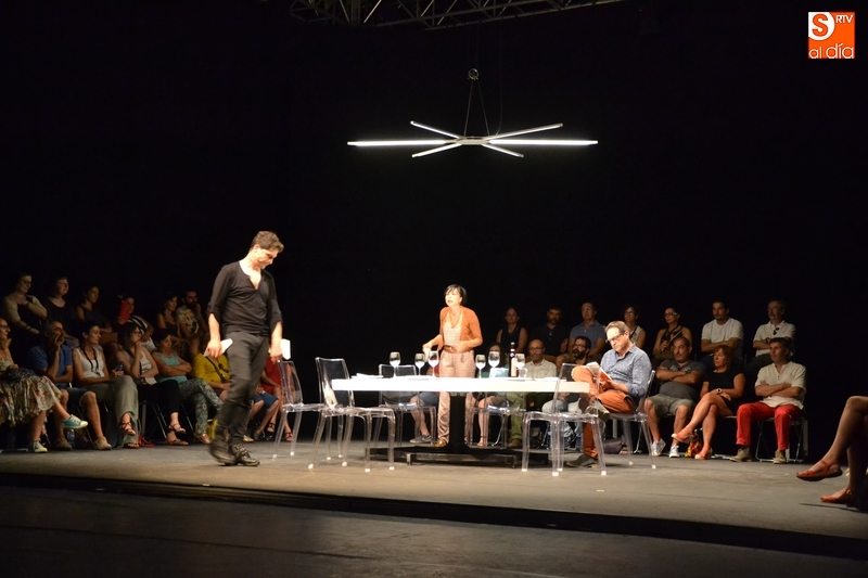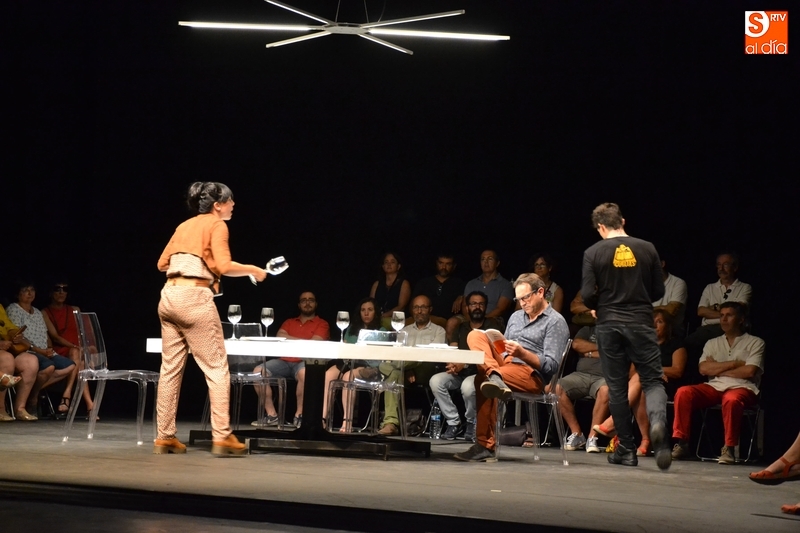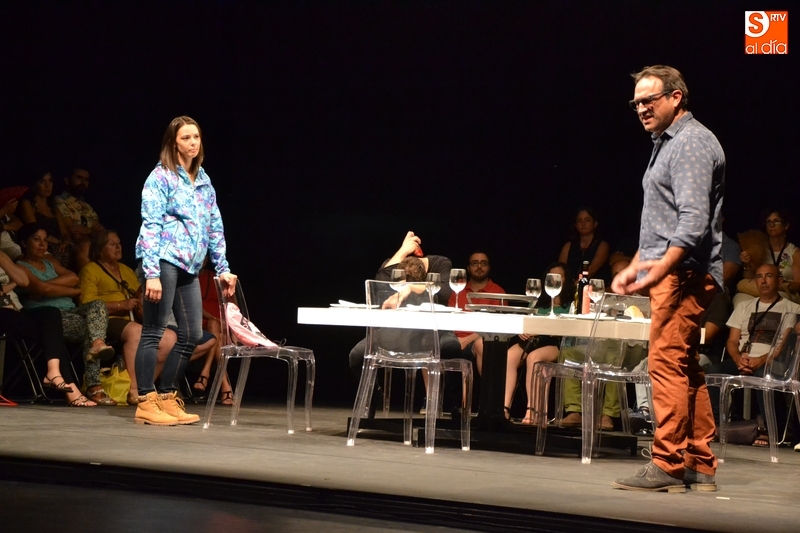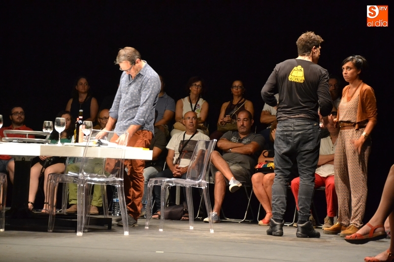 La otra cita fija de las tardes, en el Espacio Afecir, dio la oportunidad a una serie de espectadores de subirse al mismísimo escenario para ser testigos aún más directos si cabe del trabajo actoral de la compañía gallega Ibuprofeno Teatro, que ofreció un montaje denominado Raclette.