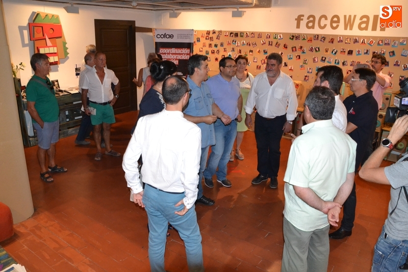 Con la guía del alcalde Juan Tomás Muñoz y varios miembros más del PSOE local, la comitiva realizó una visita que incluyó una parada en la Oficina de Profesionales de la Feria en la Casa de la Cultura, donde saludaron al director del evento, Manuel Jesús González.