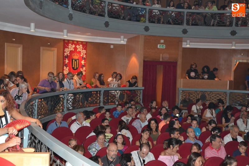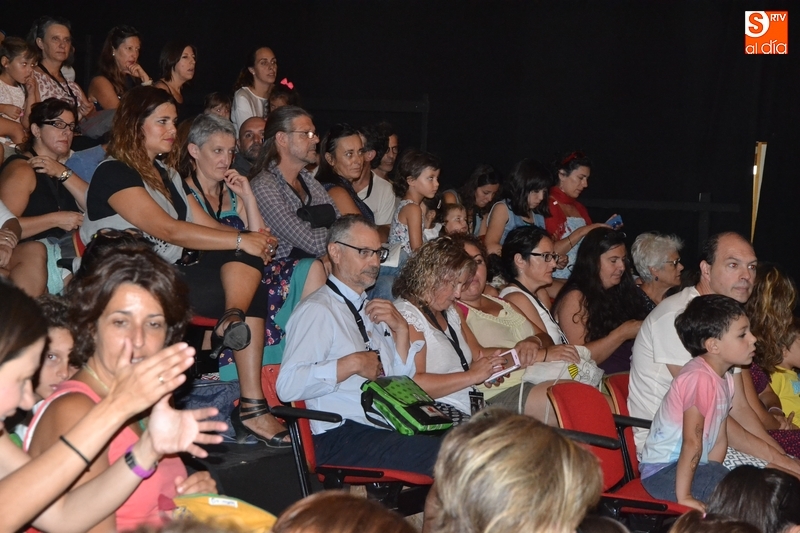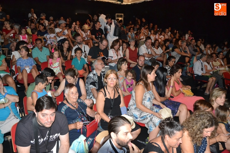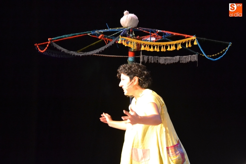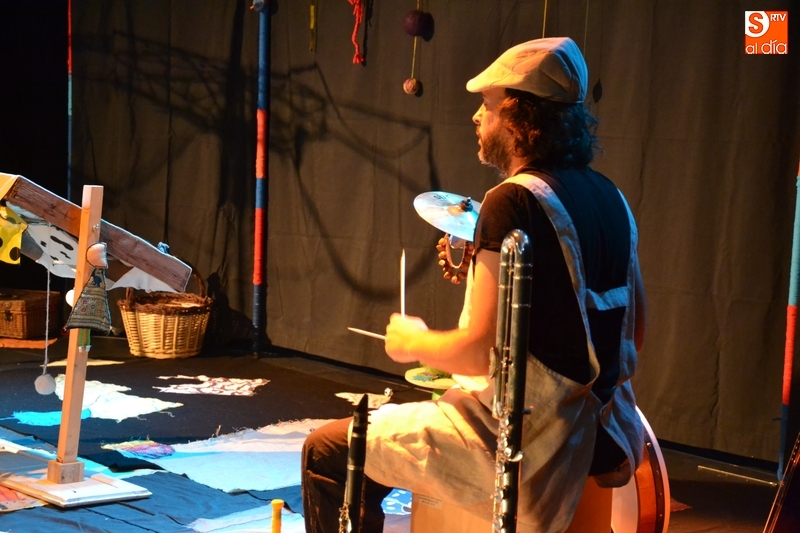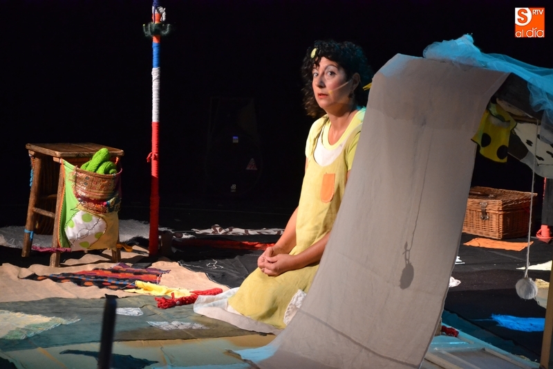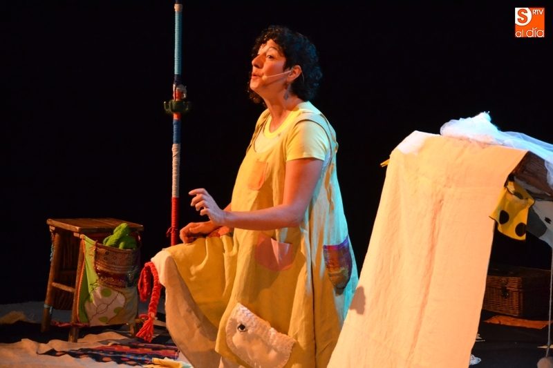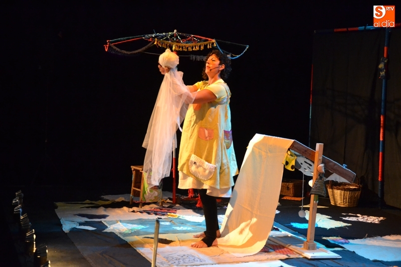 Posteriormente, la Feria hizo estreno en horario matinal -hasta ahora solo se había usado por las tardes-noches- de la Sala Esmark (el pabellón del IES Tierra de Ciudad Rodrigo), que acogió el montaje Retahilando protagonizado por Eugenia Manzanera. Junto a un músico, la tejedora, de nombre Sis Sas, fue tejiendo historias de un tiempo pasado, con objetos y canciones con aromas de países mediterráneos.