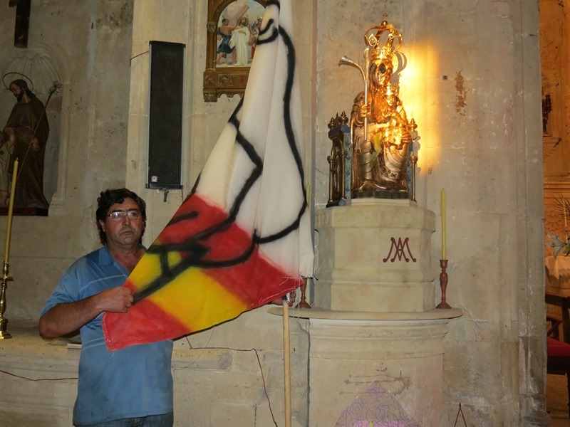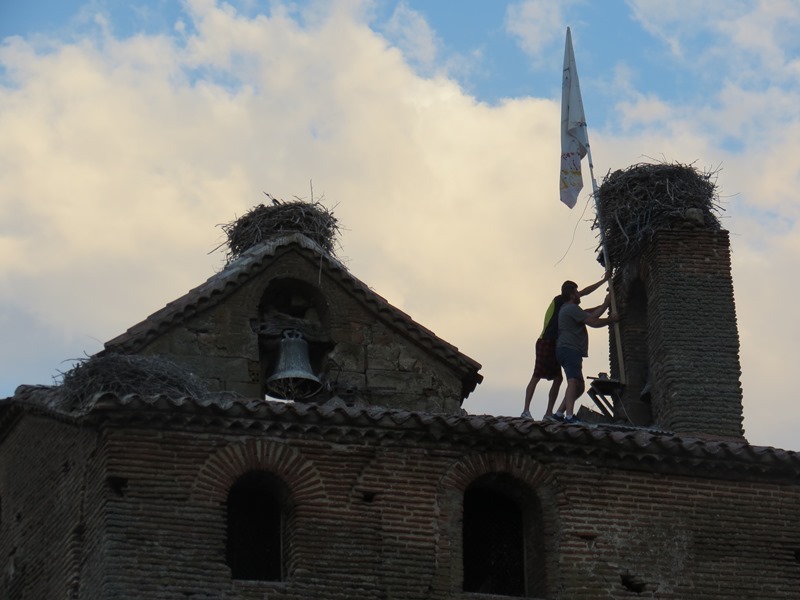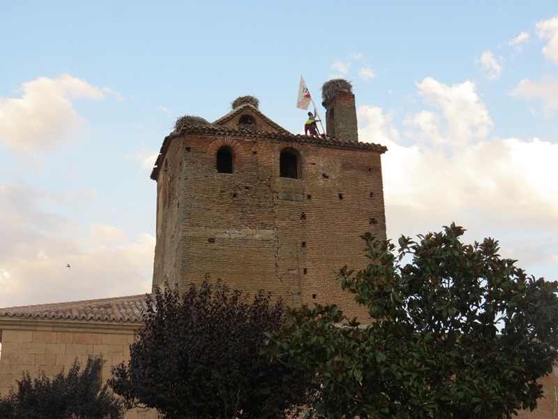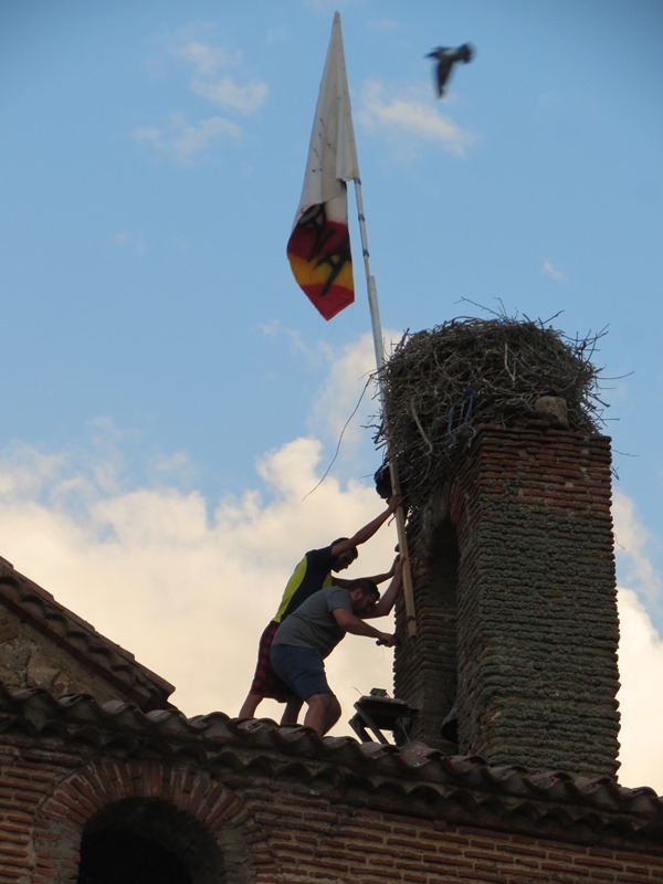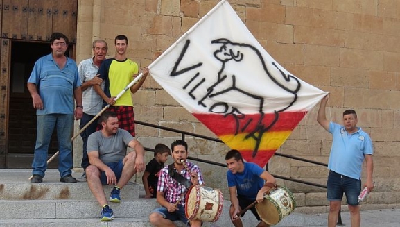 VILLORIA | Varios jóvenes la colocaron en lo más alto de la torre de la iglesia durante este jueves, anunciando la proximidad de las fiestas en honor a la Virgen de la Vega