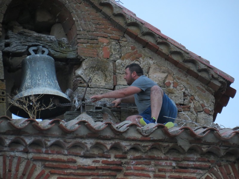 Finalmente, Alexander arriesgó y tocó con ganas la campana, a pesar de haber podido resbalarse.