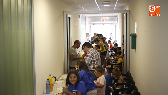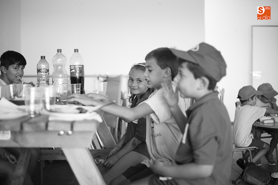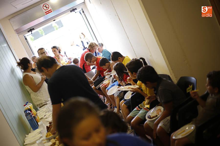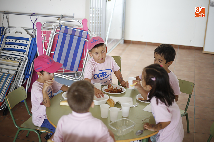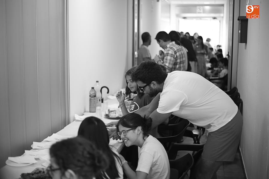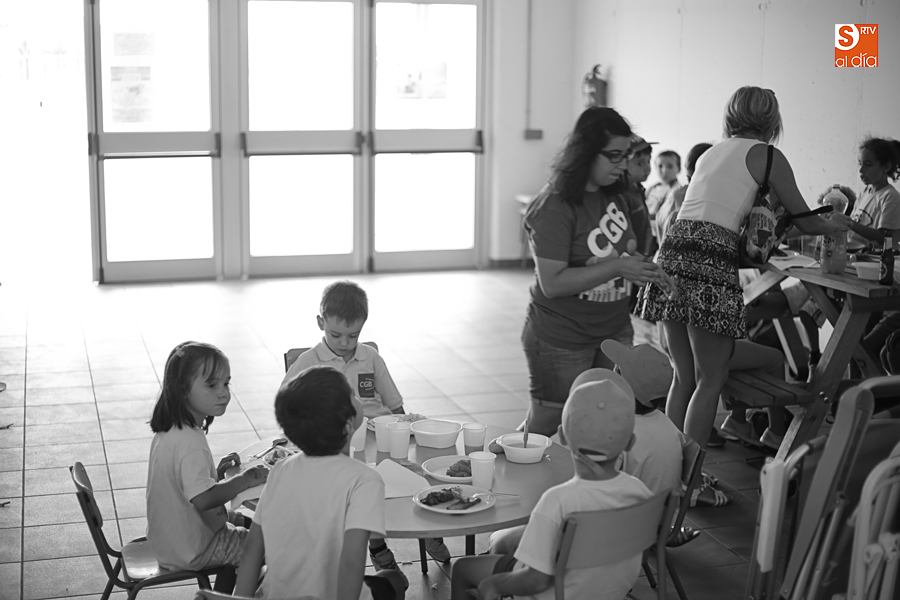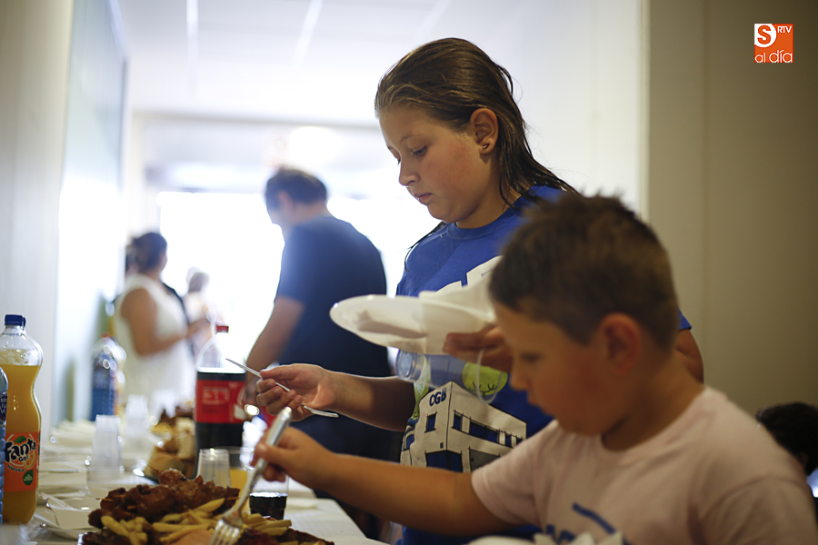 Los participantes en Aldeacampus han disfrutado al mediodía de una barbacoa organizada para celebrar la denominada 'Jornada de Padres'. Además de la presencia de los padres y de los niños que han formado parte del campus de verano de Aldeatejada, la actividad ha contado con la visita de los niños de San Cristóbal de Entreviñas, a quienes han acompañado diversas autoridades de esta localidad zamorana para compartir un gran día en las instalaciones de la piscina municipal.