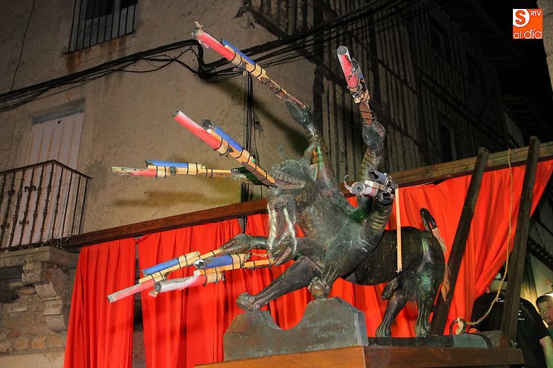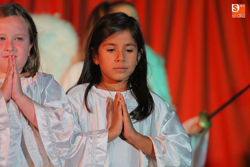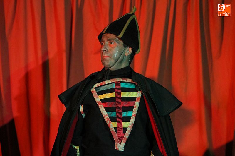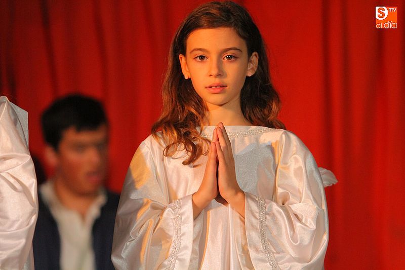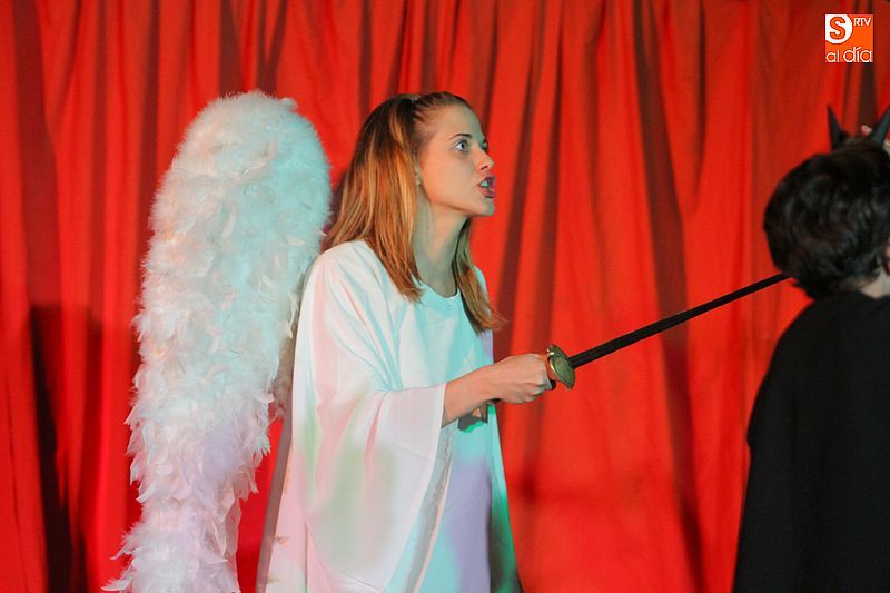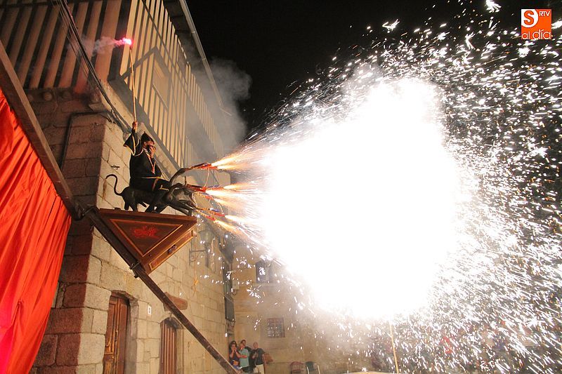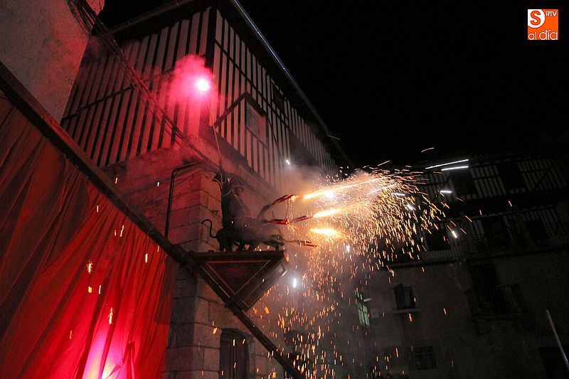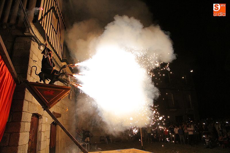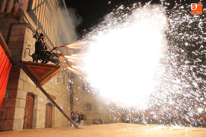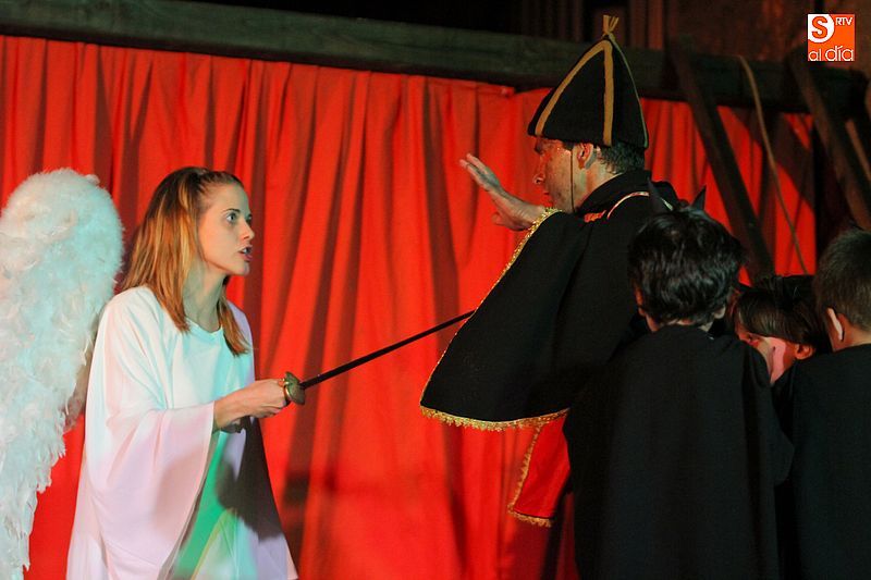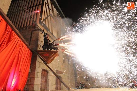 Junto varios focos de gran potencia, el público disfrutó una vez más de la obra que cuenta la historia del demonio que intenta evitar el homenaje a la Virgen en el pueblo acompañado de los siete pecados capitales. Sin embargo, el Arcángel San Miguel, acompañado de las siete virtudes, impedirá el malvado plan del demonio y hará que triunfe el bien. El uso de los fuegos artificiales en el momento de aparición en escena del demonio fue el momento más espectacular de la obra, dada la oscuridad de la noche se pudo apreciar el trabajo pirotécnico en todo su esplendor.