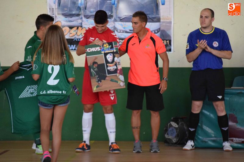 El Piensos Durán Albense se presentó ayer de manera oficial ante su público recibiendo la especial visita del equipo segoviano del Naturpellet Segovia, conjunto en el que milita el jugador albense Chus Blázquez. Los albenses cayeron derrotados en el encuentro por dos goles a cuatro (2-4) en un enfrentamiento que se fueron ganando al descanso y en el que tras la reanudación los segovianos dieron la vuelta e impusieron su calidad y experiencia sobre el parqué.