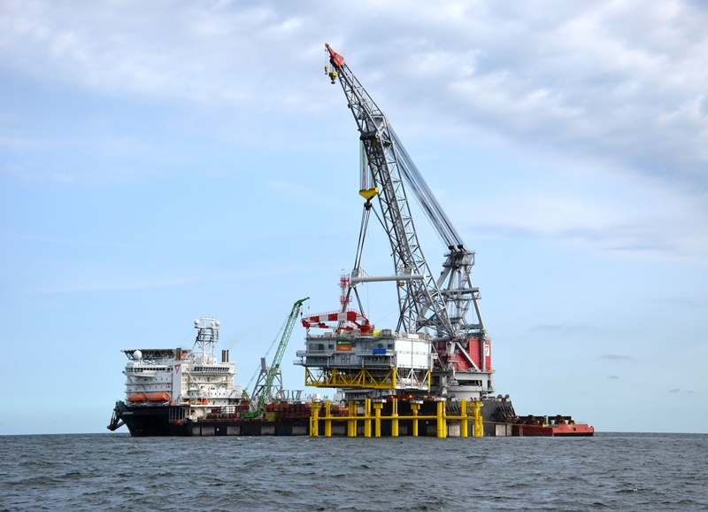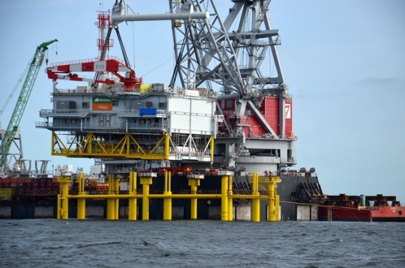 Como paso previo necesario a la instalación de la subestación, el buque grúa especial Oleg Strashnov ha empleado algo menos de una semana en el montaje de la estructura de tres piezas que la sostiene.
