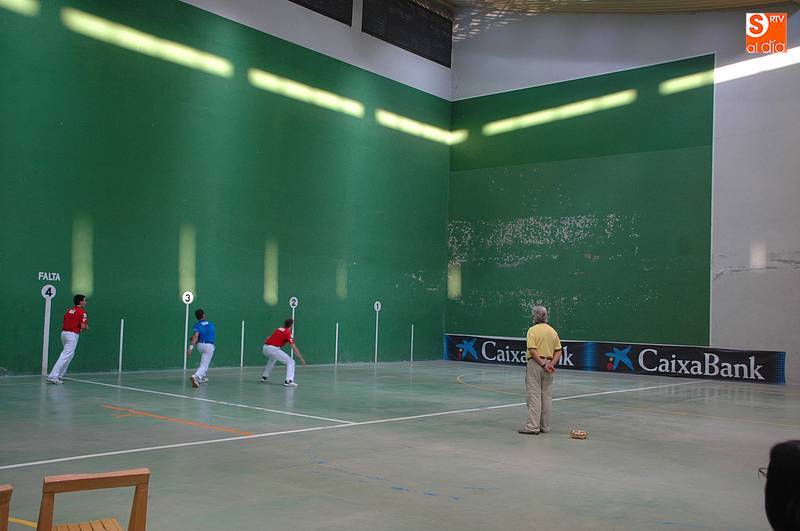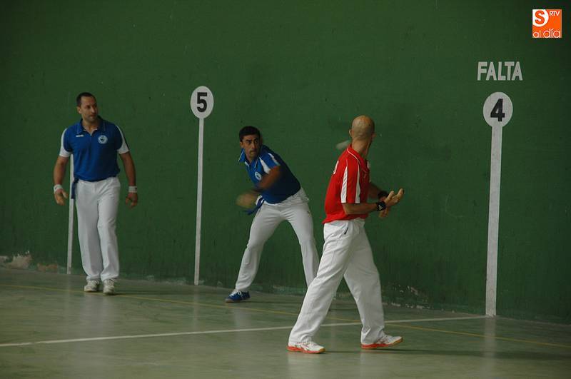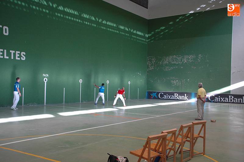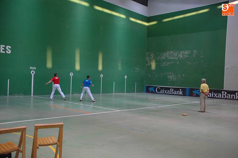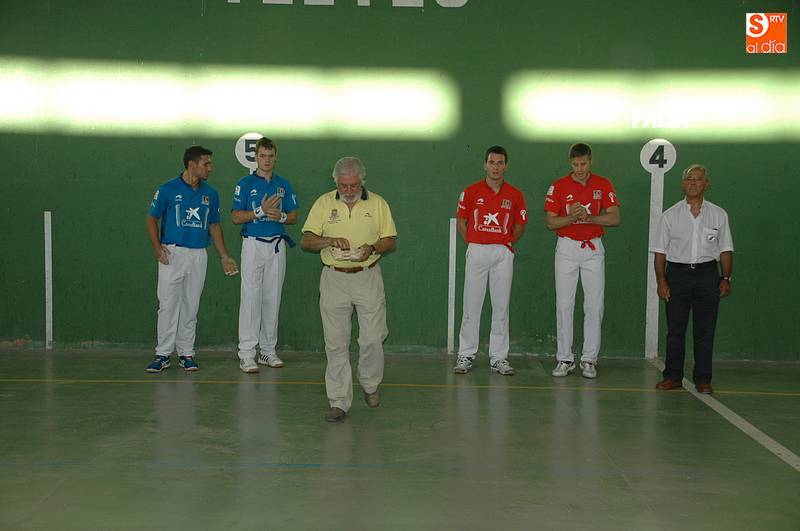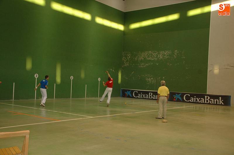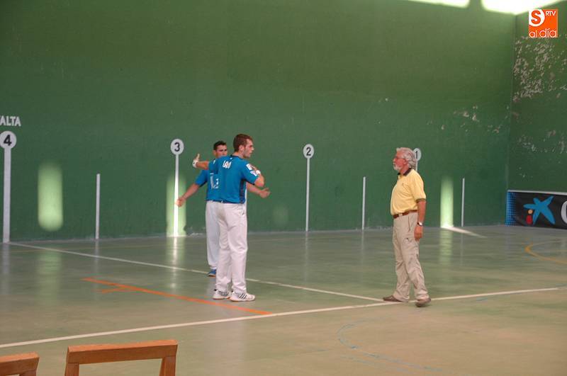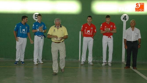 Imaz y Tainta (colorados) se enfrentarían a Iturriaga y Laso (azules), con victoria para los primeros tras disputar tantos muy peleados. Laso demostró ser un jugador muy inteligente junto a un Iturriaga incansable, pero no fue suficiente para vencer a un Tainta muy luchador y a un Imaz que apunta a ser un excelente zaguero (22-20). Al final, bonito partido de la cantera de Asegarce, empresa que también ofrecerá el próximo 1 de septiembre en Ledesma un nuevo espectáculo.