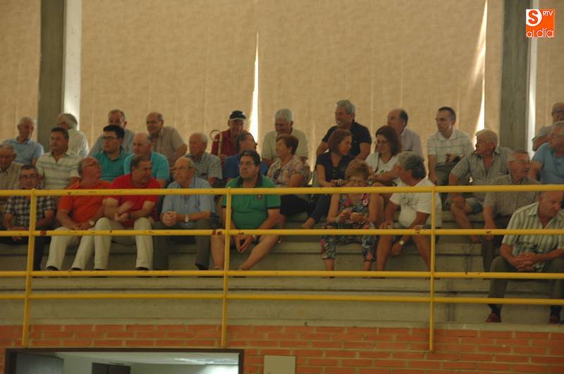 En el primer encuentro se enfrentaban Galgo IV y Rodríguez II (azules) contra Plaza y Serrano II (colorados), viejos conocidos que volvían a batirse sobre el cemento con tantos de hasta seis minutos, un partido muy igualado que al final se decantaría a favor de los azules, como viene acostumbrando Galgo VI y su zaguero al público de la comarca de Vitigudino.