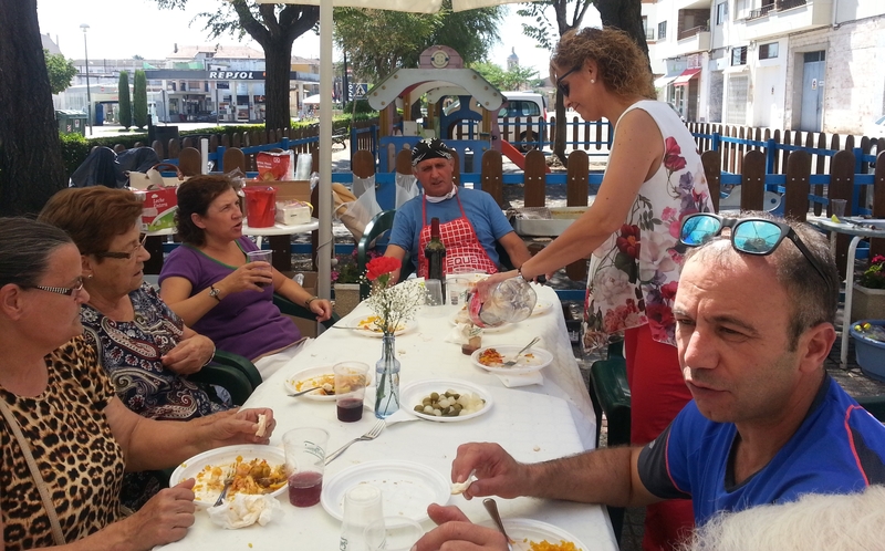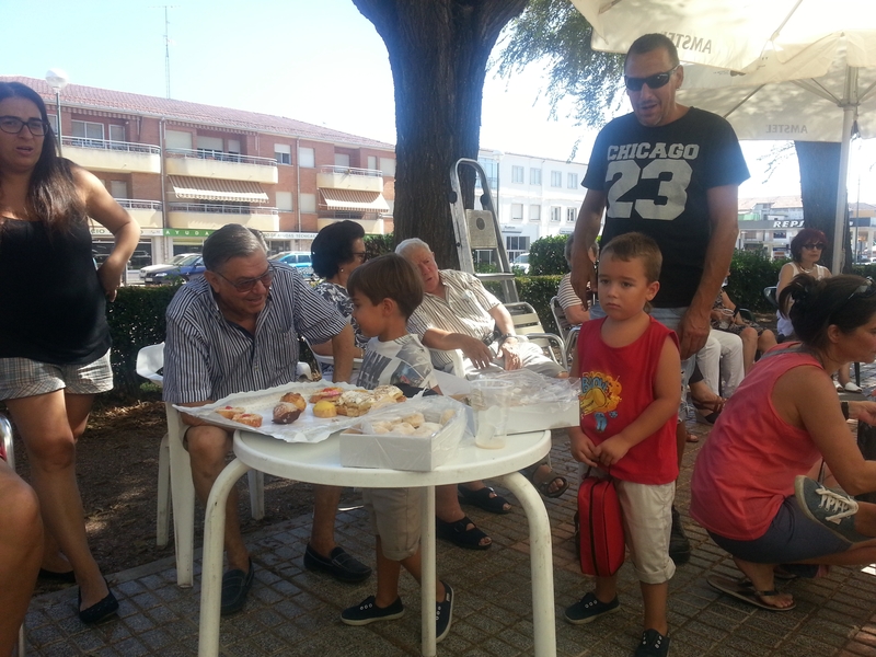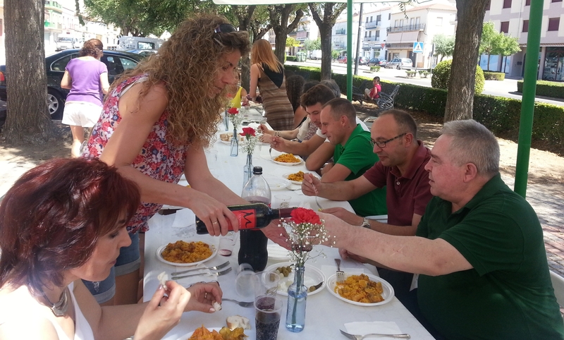 La jornada de confraternización, desarrollada en la zona donde se construyeron las primeras viviendas del barrio, comenzó con un aperitivo que dio paso a la comida, consistente en una gran paellada. La sobremesa fue muy animada, extendiéndose la celebración con una merienda-cena.