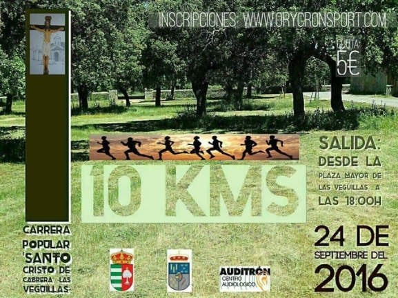 El Ayuntamiento de Las Veguillas, Diputación de Salamanca y Auditrón, organizan la I Carrera Popular Santo Cristo de Cabrera-Las Veguillas. Está carrera, que se celebrará el próximo día 24 de septiembre, está abierta a toda clase de corredores, federados o no federados, sin distinción de categoría, mayores de 16 años.
