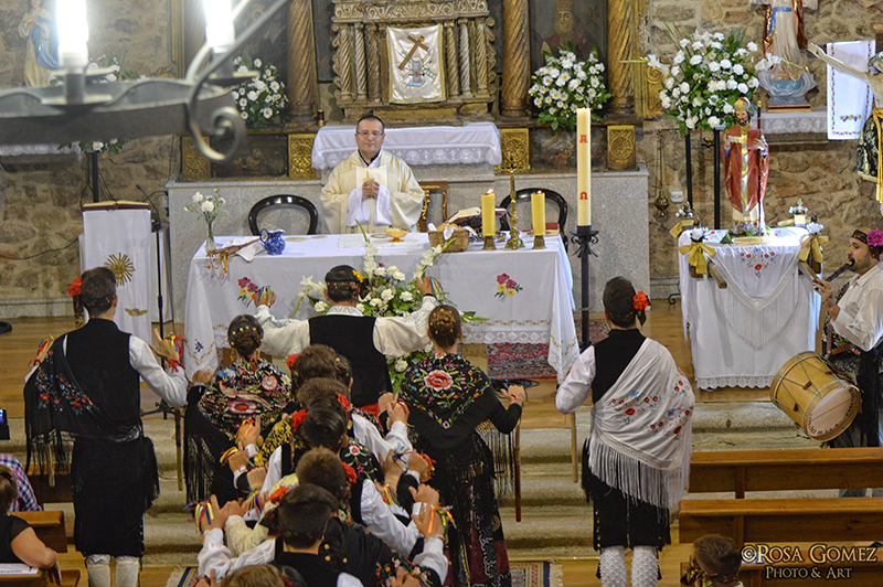 El día grande de los festejos de Santibañez de la Sierra se vivió con emoción, especialmente en el ofertorio a San Agustín, en el que no faltó la presencia del alcalde, Francisco Aguadero, la reina de las fiestas, Elena Nieto, su corte de honor. El coro local no faltó a la cita, así como los bailarines locales que ofrecieron el tradicional paleo en cruz, propio de la localidad al ritmo de la música del tamborilero Alfonso Santos.