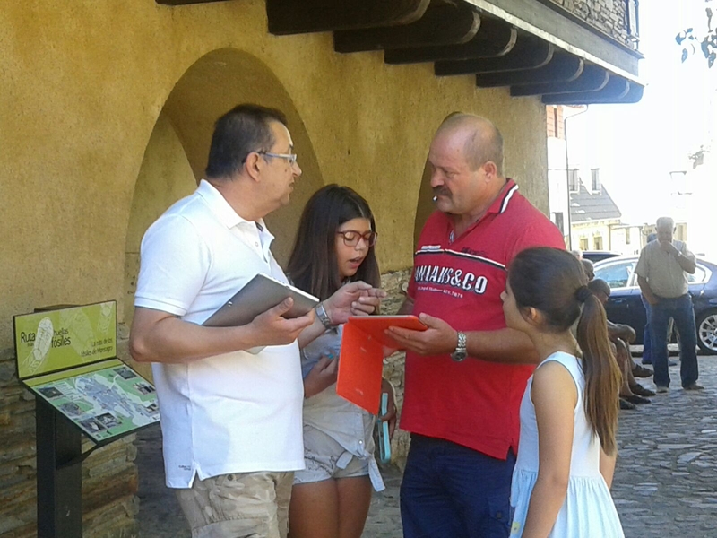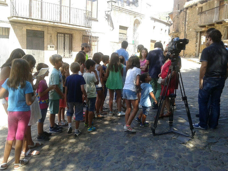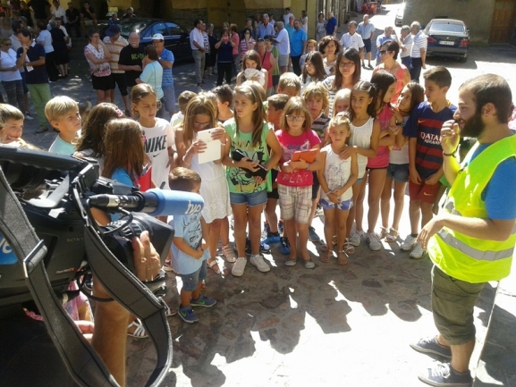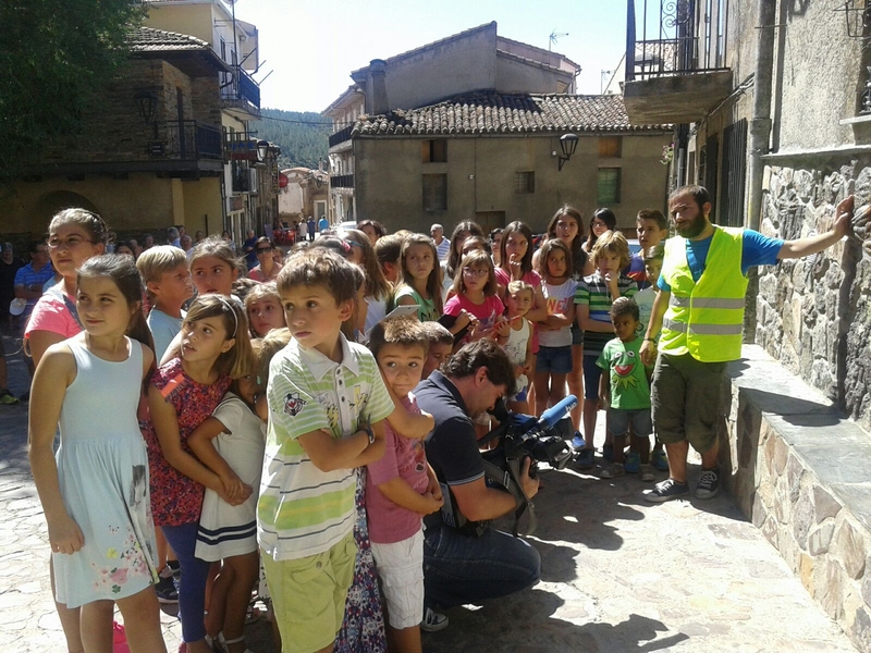 La visita de las cámaras de TVE fue todo un acontecimiento, siendo seguida por numerosos vecinos, sobre todo niños, que tuvieron la oportunidad de recorrer la Ruta de la mano de Carlos, un estudiante de Geología de la Universidad de Salamanca, que ha estado durante este verano trabajando como geomonitor de la Ruta.