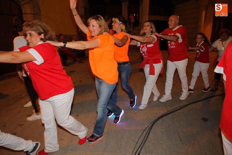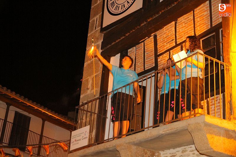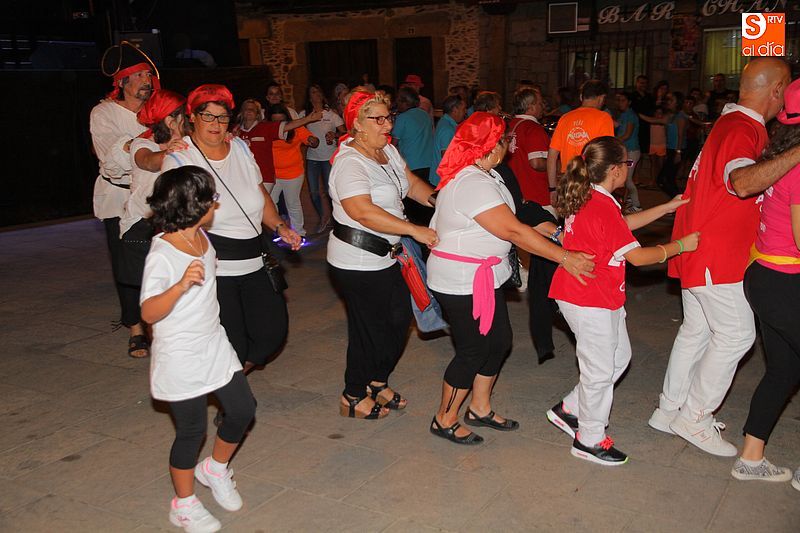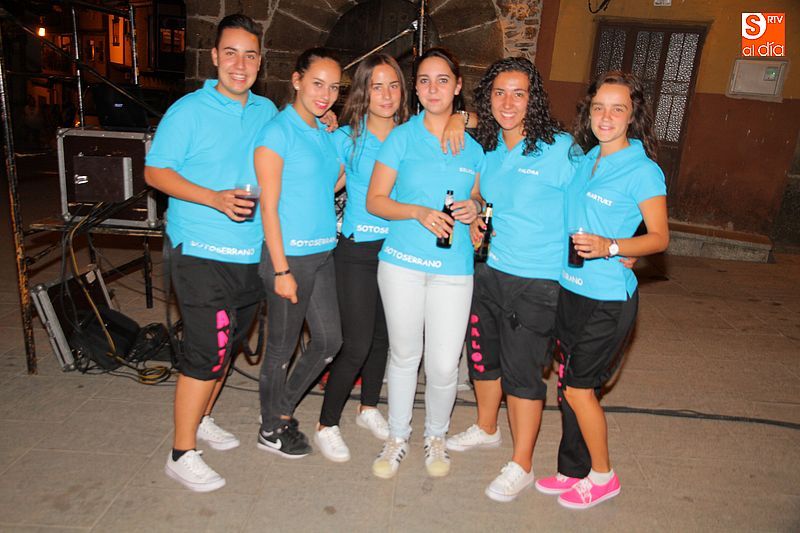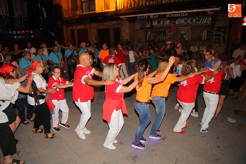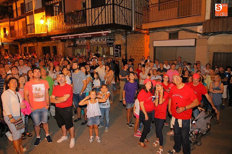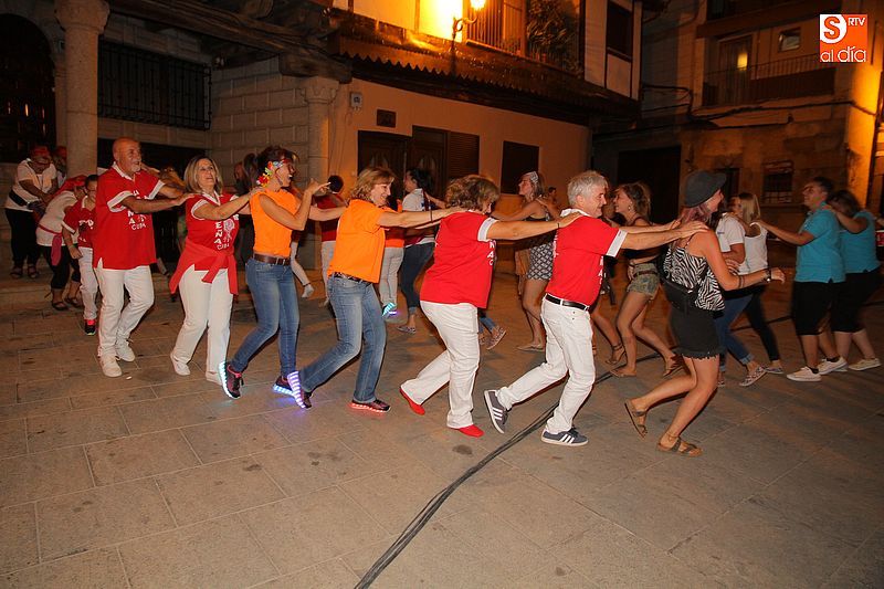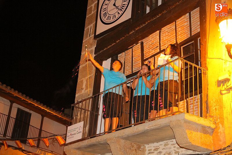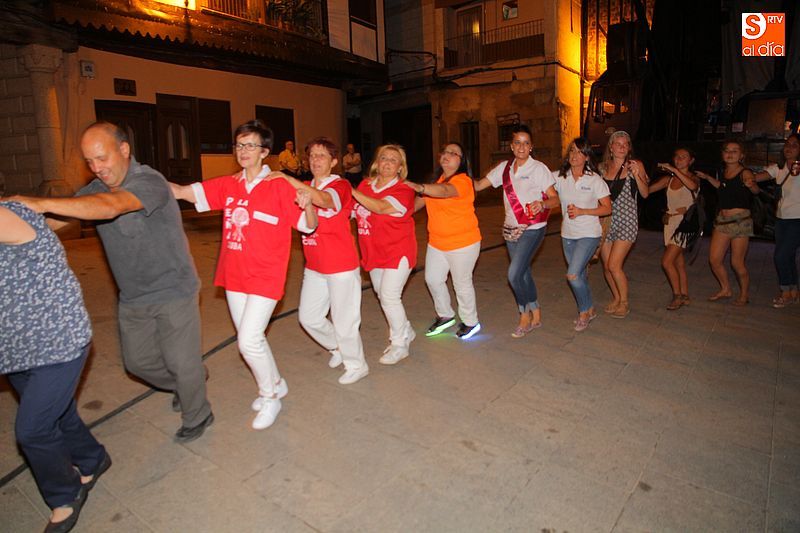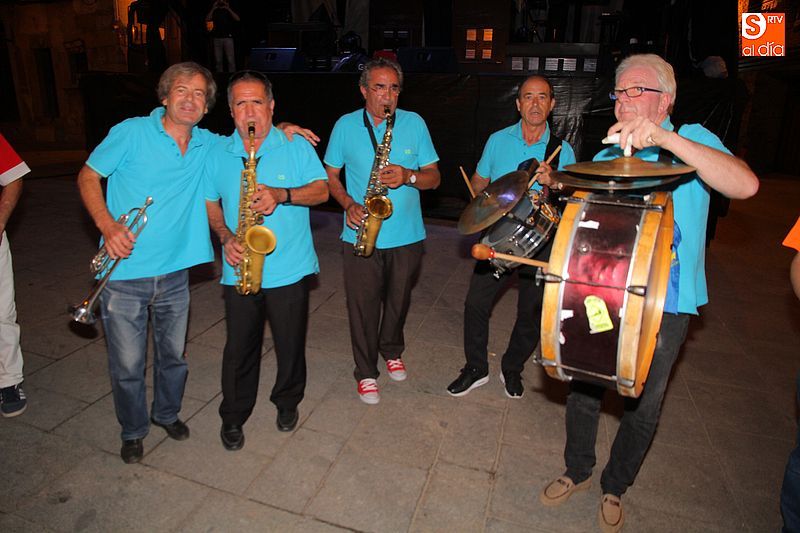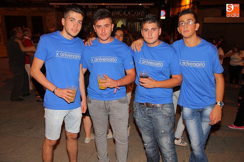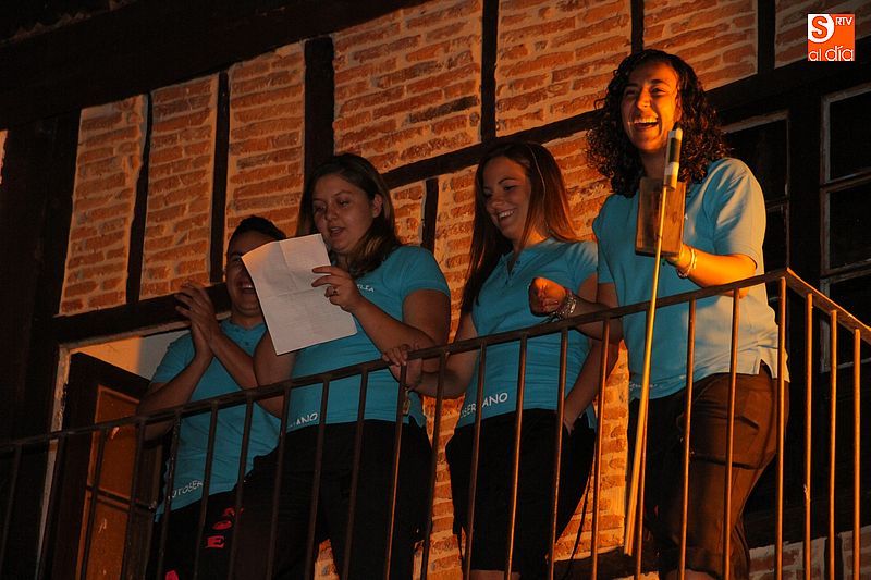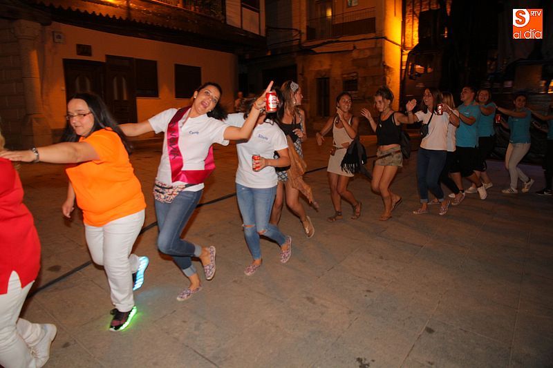 En torno a las diez de la noche se reunieron las peñas en la plaza Mayor, donde la música de la charanga El Bombazo actuó de reclamo para las peñas, ya fueran de jóvenes o mayores, que pronto se animaron al baile, con divertidas congas por la plaza al son de temas clásicos del verano. Una vez creado el ambiente festivo con las peñas, el público en general también se acercó a la plaza para presenciar la verbena, con la orquesta salmantina Slam, y el pregón, responsabilidad que este año recayó en los miembros de la peña 'La Bodeguita', por su continua colaboración con el Ayuntamiento en la preparación de todo tipo de actos a lo largo del año. Cuatro representantes de la peña subieron al balcón del reloj en la plaza y pronunciaron a cuatro voces un corto, pero intenso pregón, apelando a la participación, la colaboración y el disfrute de todos los vecinos en los festejos que se extenderán hasta el viernes 2 de septiembre.